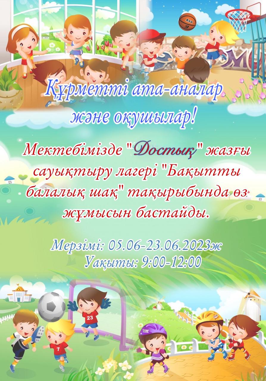 Мектебімізде “Достық” жазғы сауықтыру лагері “Бақытты балалық шақ” тақырыбында өз жұмысын бастайды.