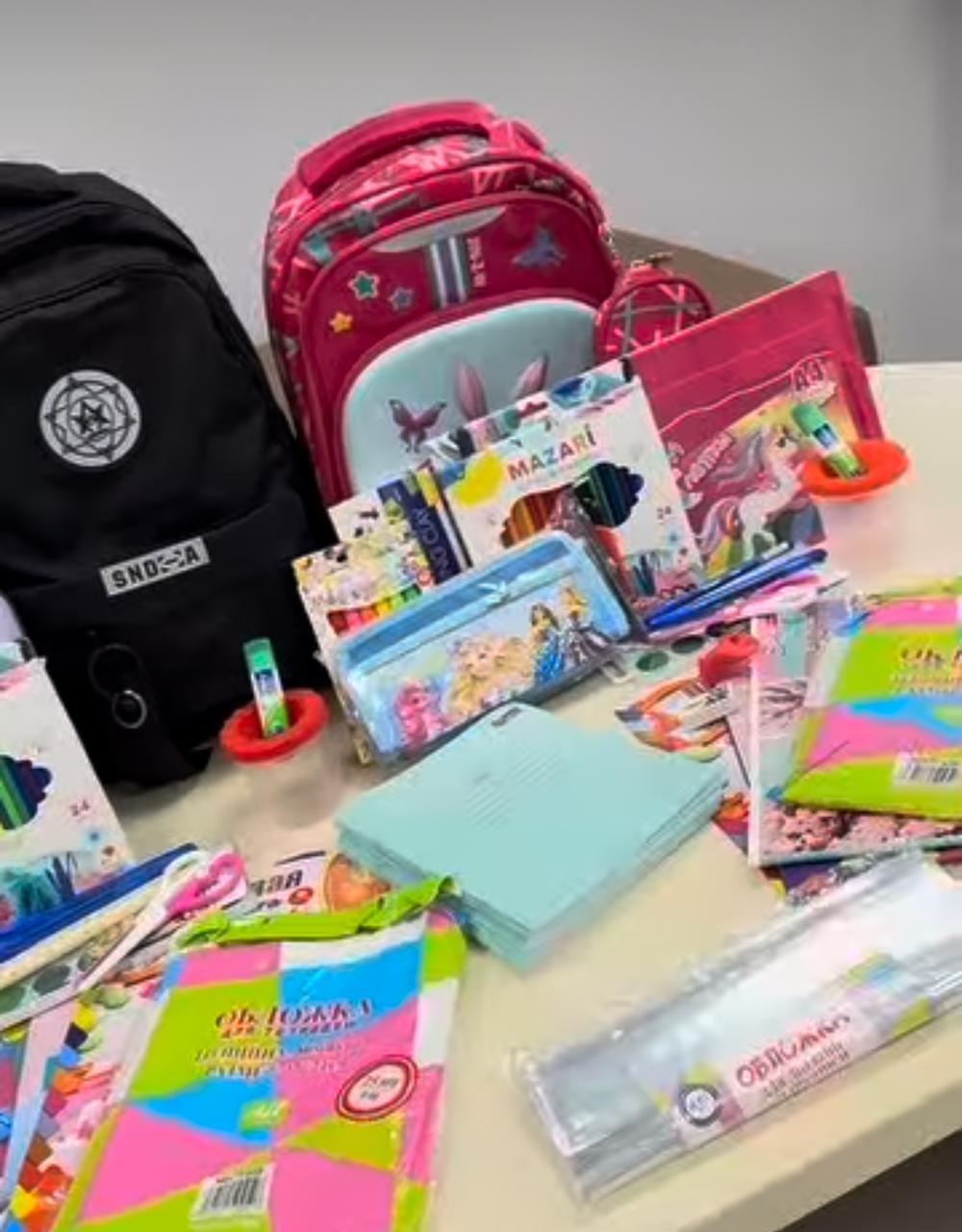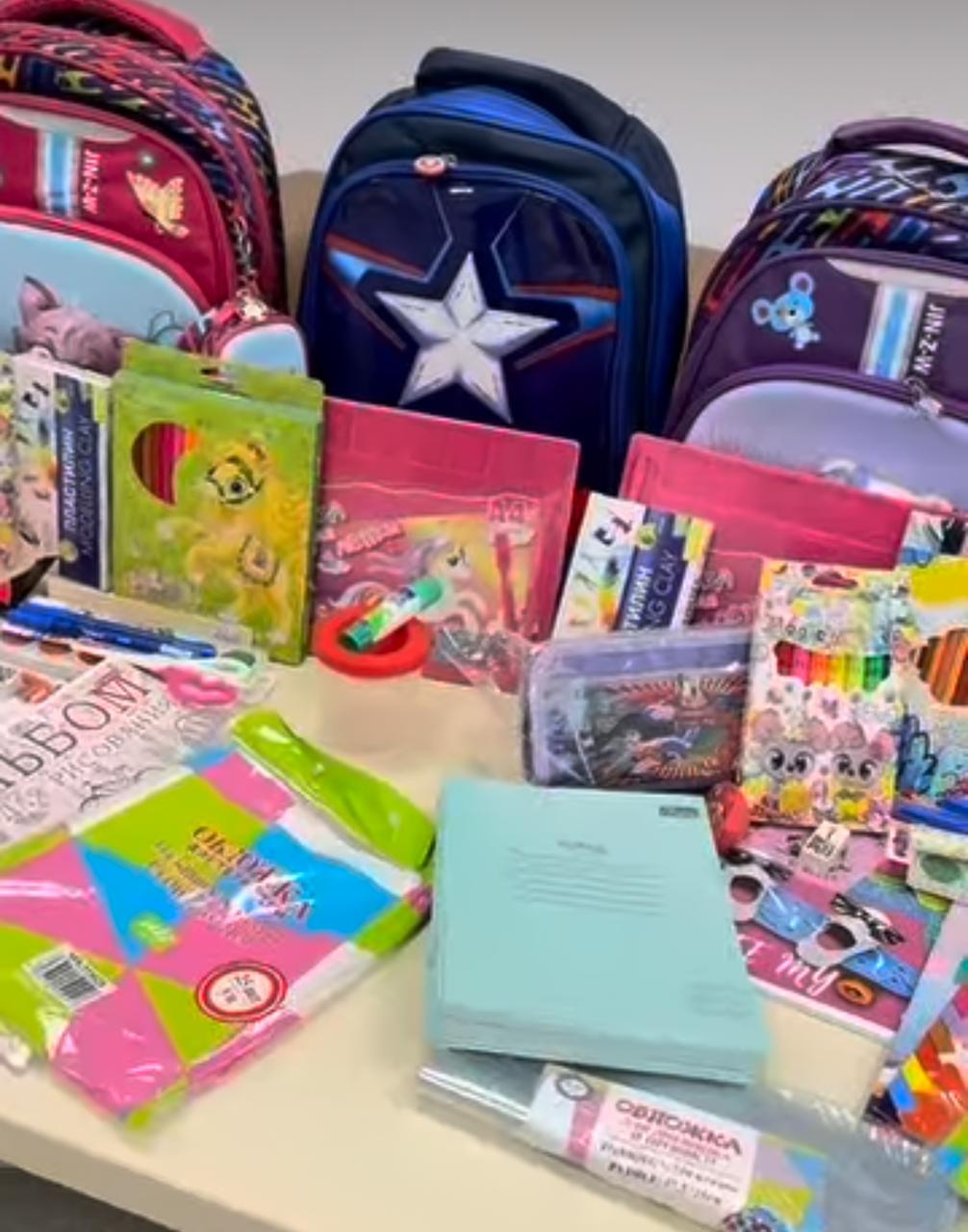 «Мектепке жол» акциясы аясында демеушілер тарапынан көпбалалы, аз қамтылған отбасы балаларына кеңсе тауарлары мен сөмкелер берілді.
