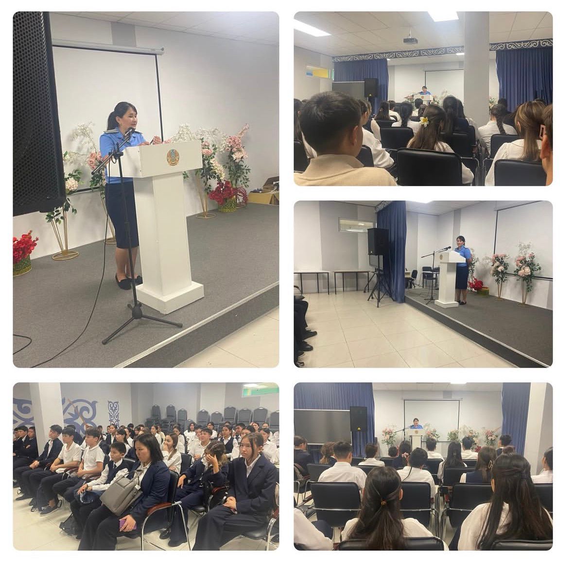 12 қыркүйек күні мектеп-гимназиямызда 9–11 сынып оқушыларына құқықтық бұзушылықтың алдын алу және заңнамаларды түсіндіру мақсатында маңызды кездесу өтті.
