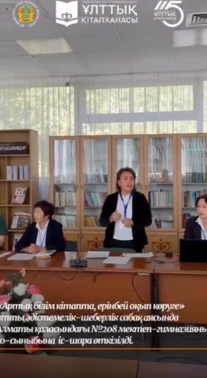 Шоқан Уәлихановтың 190 жылдығына орай Қазақстан Республикасының Ұлттық кітапханасының ұйымдастыруымен №208 мектеп-гимназиясының 10-сынып білім алушыларына «Артық білім кітапта, ерінбей оқып көруге» атты әдістемелік шеберлік сабағы өткізілді.