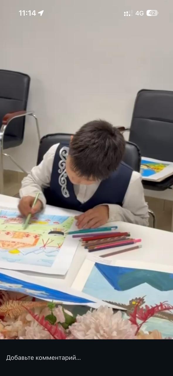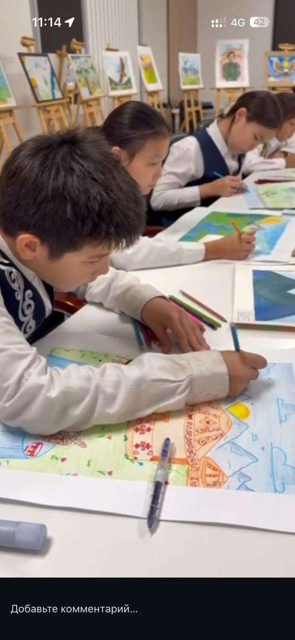 Оқушылар өз шығармалары арқылы еліміздің әсем табиғатын, бейбіт өмірін және болашағына деген сенімін бейнеледі. 🇰🇿✨