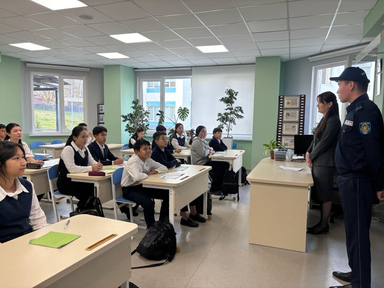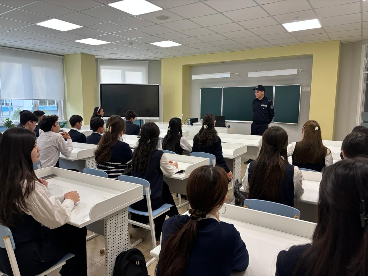 Құқық бұзушылықтың алдын алу мақсатында 2025 оқу жылы 03 қараша күні 8-11 сынып оқушылары арасында Наурызбай аудандық кәмелетке толмаған жөніндегі учаскелік инспекторы полиция лейтенанты Абулайс Досбол Серікбекұлының қатысуымен құқық бұзушылықтың алдын алу, кәмелетке толмағандар арасындағы қылмыстың өсуіне жол бермеу мақсатында ҚР ӘҚБ туралы кодексінің жекелеген баптарын және де әкімшілік кодексінің өзгертулерімен таныстыру үшін жиналыс өткізді.