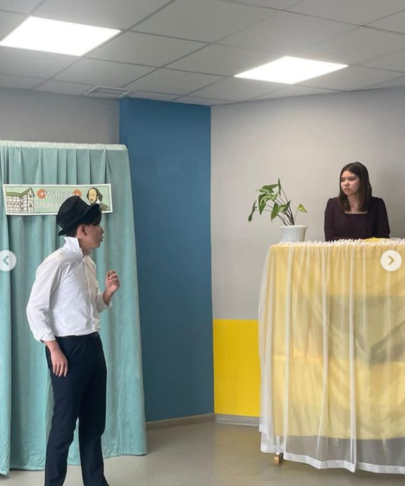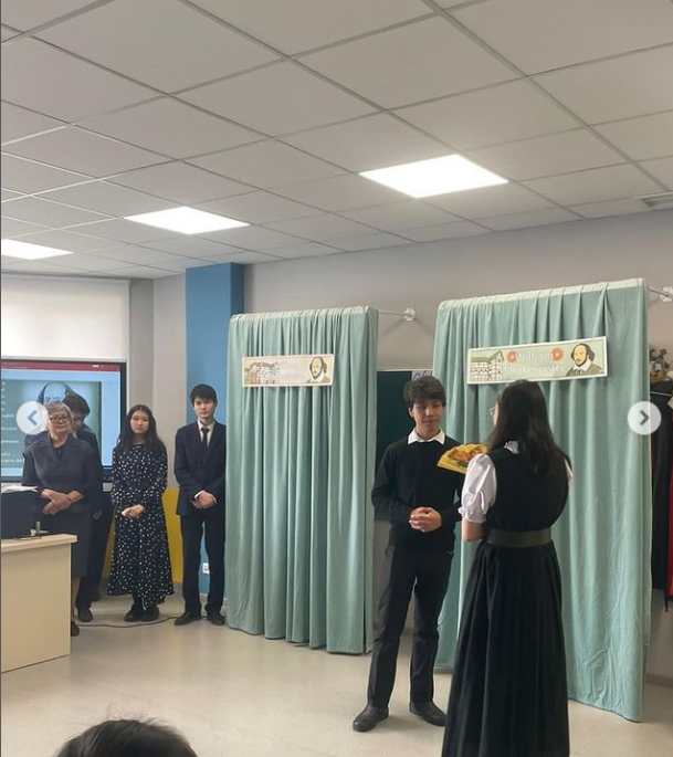 ағылшын тілі пәні мұғалімі Райымбекова Малина 9 “Ә” -сынып оқушыларымен "Shakespeare’s work " тақырыбында сыныптан тыс танымдық сабақ өткізді.
