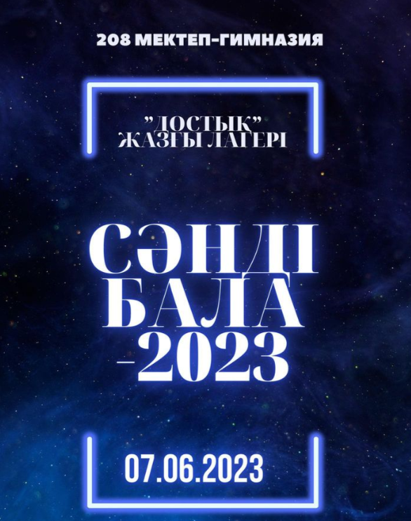 “Өз жұлдызыңды жақ” тақырыбында лагерге келетін оқушылардың қатысуымен “СӘНДІ БАЛА-2023” сән үлгісін көрсетеді. Стиль, имидж, сәнді әрі үйлесімді киіну-жаңа ғасыр талабы. Музыка әуенімен бірге балалар қызыл кілемнен өтіп, өнерін көрсететін болады🥰⭐️💥