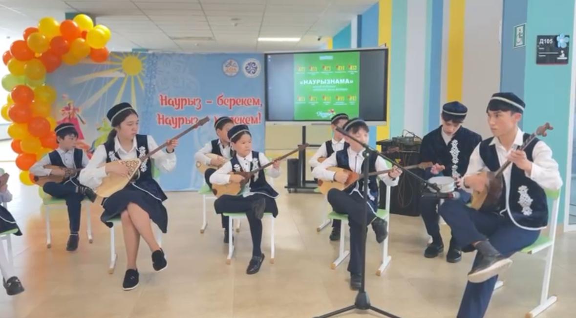 #208 мектеп-гимназиясының “Қыран” домбырашылар ансамблі “Балбырауын” күйімен домбырашылар челленджіне қатысуда.