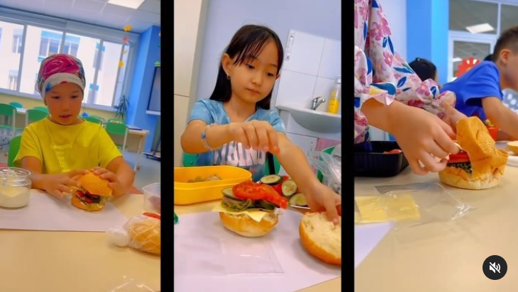 Сонымен қатар жазғы лагердегі тәрбиешілерінің бақылауымен балалардың өздері “Бургер” жасап үйренді.