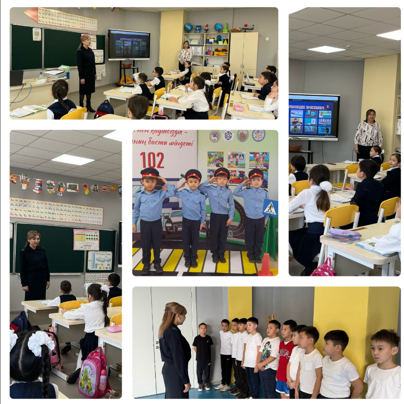 Кездесу барысында балаларға жолда жүру ережелері, жаяу жүргіншілердің қауіпсіздік шаралары және жол белгілерінің маңызы туралы айтылды. Оқушылар өздерін қызықтырған сұрақтарын қойып, пайдалы кеңестер алды.