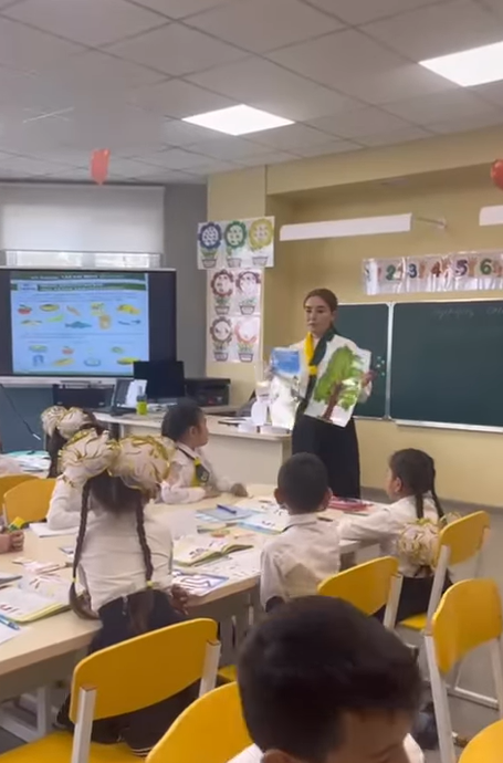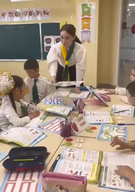 1 «В» сыныбының жетекшісі Сұлтан Мадина дүниетану пәнінен «Мен қалай тамақтанамын?» тақырыбында ашық сабақ өткізді.