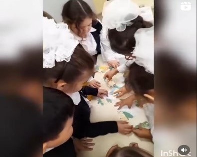Алматы қаласы, Наурызбай ауданы № 208 мектеп-гимназиясында жаңа оқу жылында мектеп табалдырығын аттаған 1 «Б» сынып оқушылары Әліппемен қоштасу тәрбие сағатын өткізді.