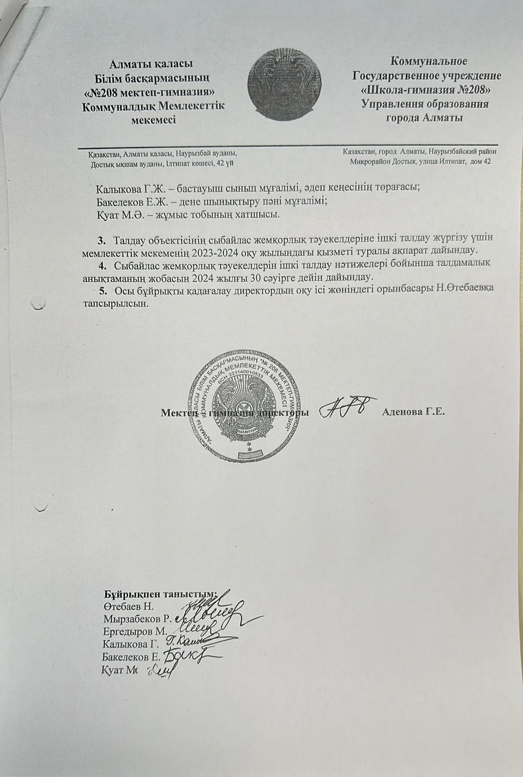28 наурыз 2024 0 1 2 3 4 5 Мектеп - гимназия 2024 жылғы сыбайлас жемқорлық тәуекелдеріне ішкі талдау жүргізу туралы бұйрық