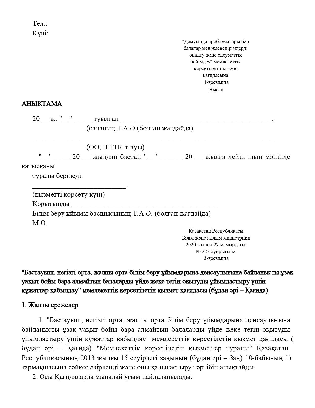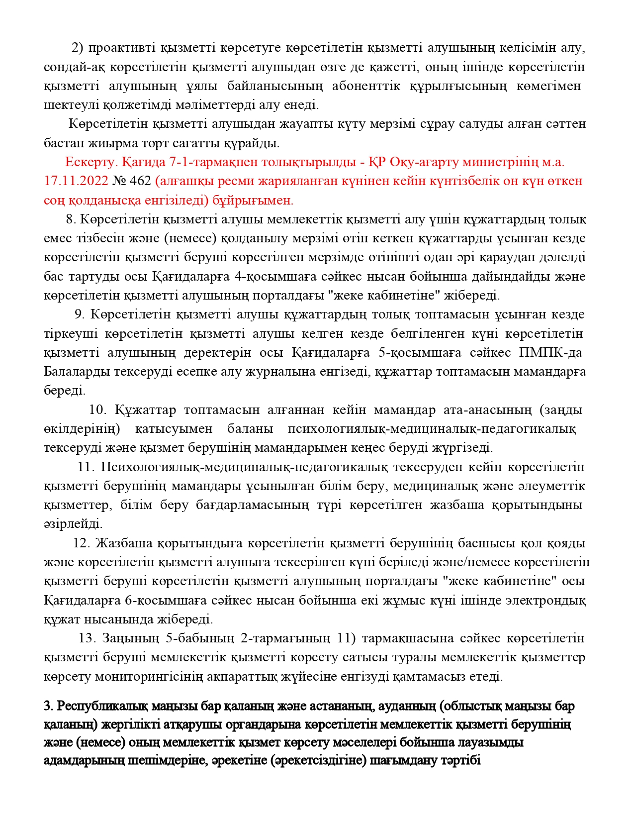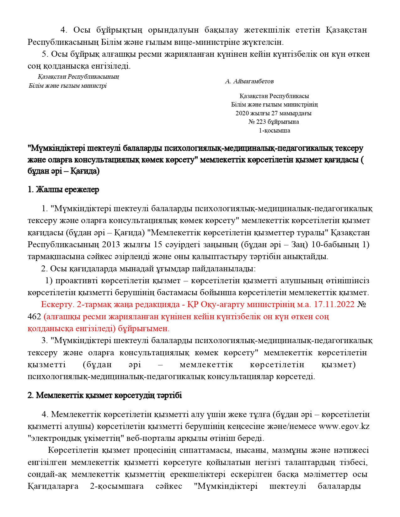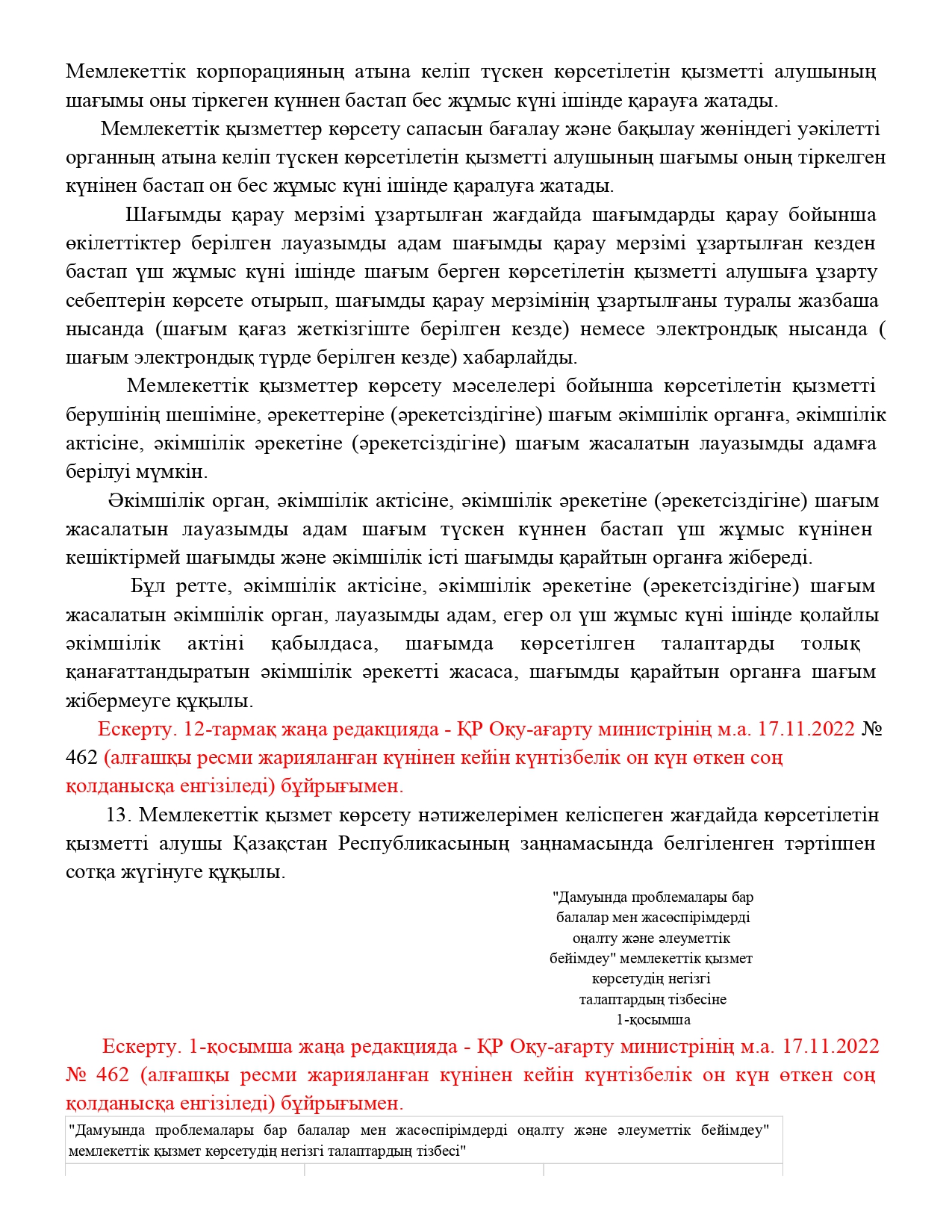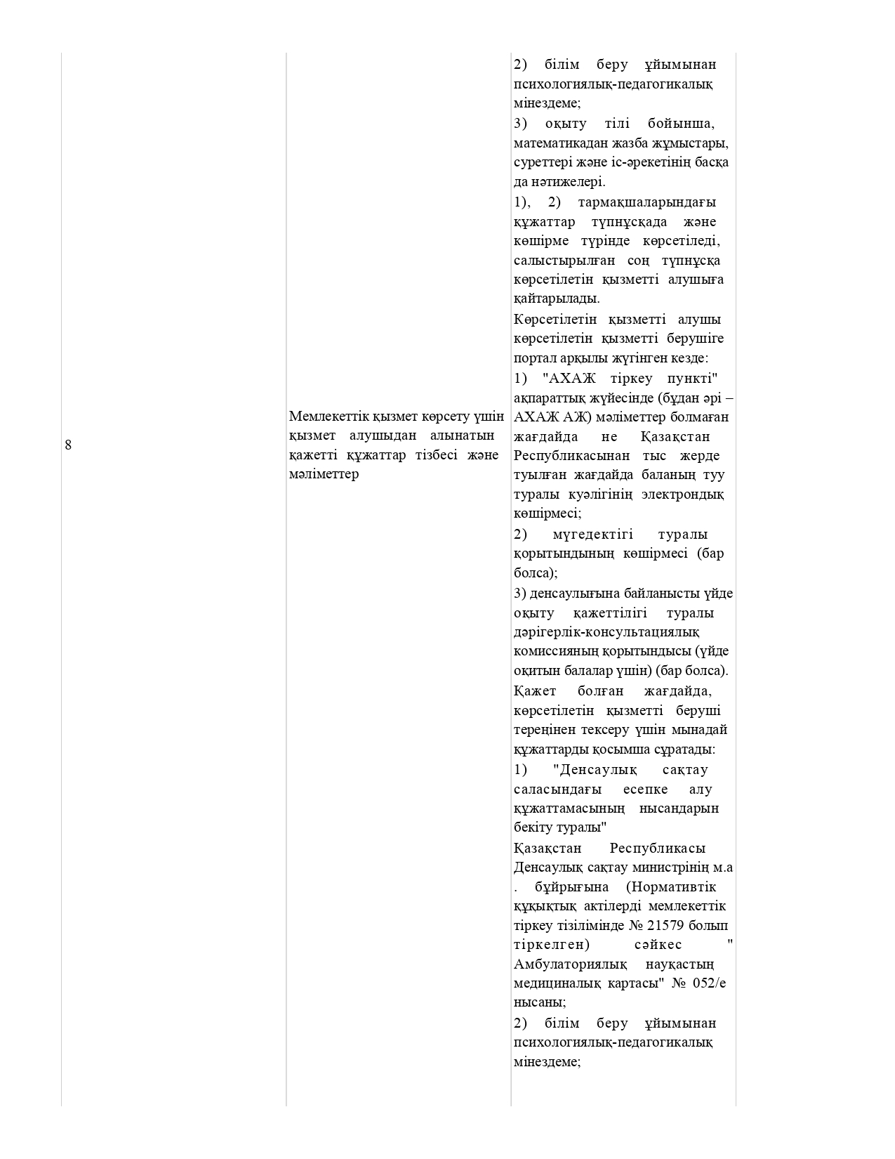 №208 мектеп-гимназия » Ашық орган » Мемлекеттік қызметтер » "Психологиялық-педагогикалық қолдау саласындағы жергілікті атқарушы органдар көрсететін мемлекеттік көрсетілетін қызметтерді көрсету тәртібін бекіту туралы"
