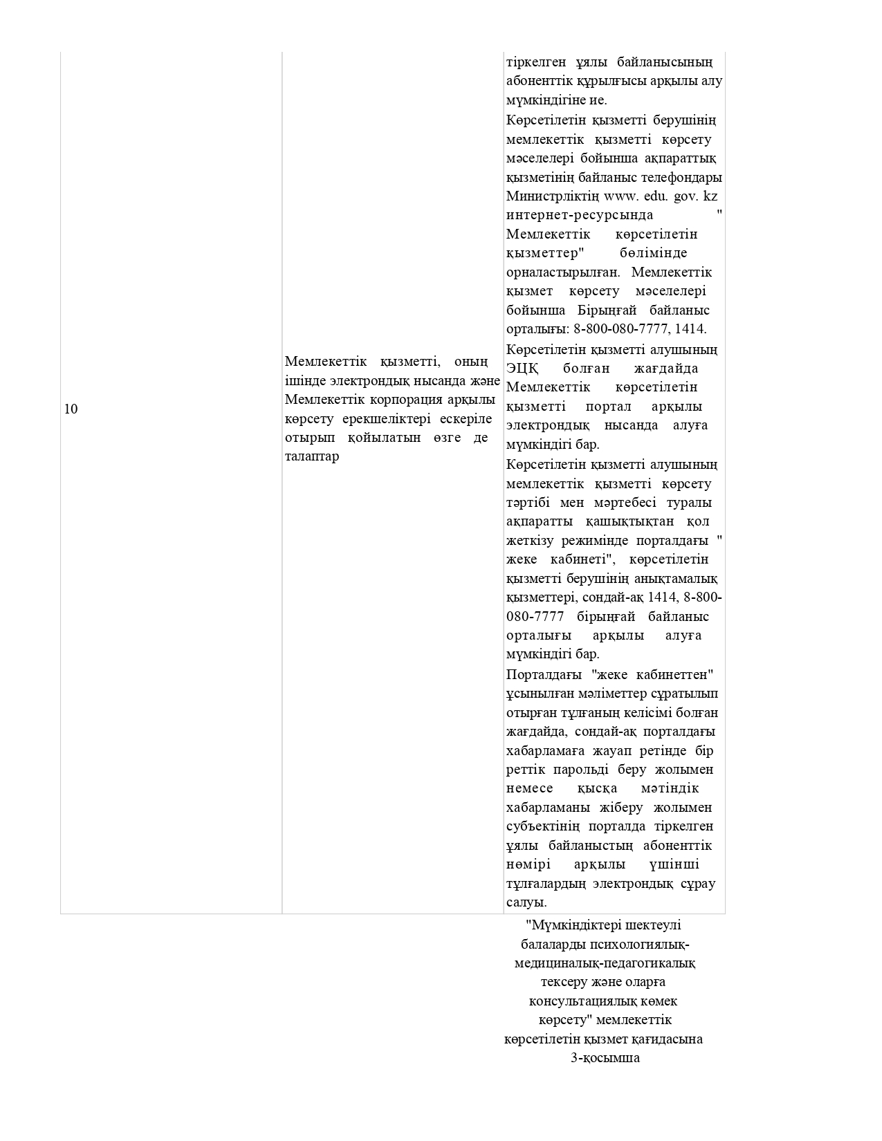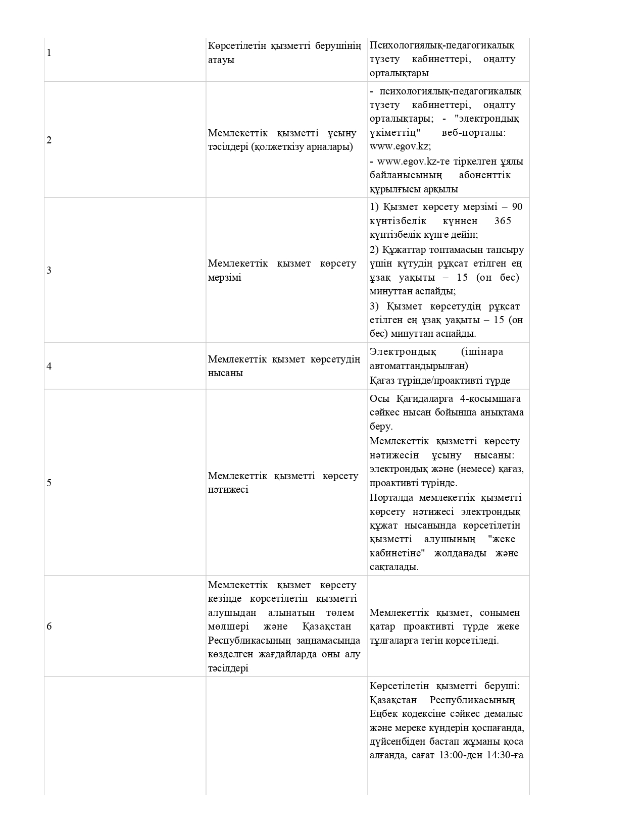 "Психологиялық-педагогикалық қолдау саласындағы жергілікті атқарушы органдар көрсететін мемлекеттік көрсетілетін қызметтерді көрсету тәртібін бекіту туралы"