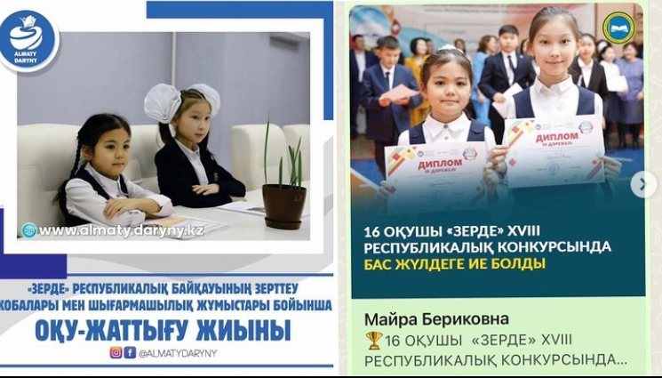 Бастауыш және орта буынды оқушылардың интеллектуалдық-шығармашылық әлеуетін және танымдық қызығушылықтарын ынталандыру мен оларға қолдау таныту мақсатында «Дарын» республикалық ғылыми -практикалық орталығы 2023 жылдың 15-19 наурыз аралығында «Балдәурен» республикалық оқу-сауықтыру орталығының базасында (Ақмола облысы, Щучье қаласы) оқушылардың зерттеу жобалары мен шығармашылық жұмыстарының «Зерде» XVIII республикалық конкурсын өткізді.