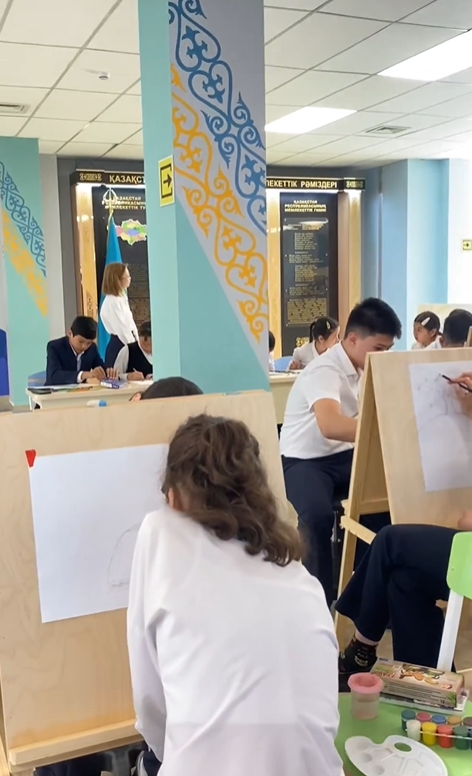 Көрме барысында оқушылар бірлік күніне байланысты қылқаламмен сурет салып, бейнелеу өнеріндегі дарынды оқушылардың нәтижесін көруге болады. Сонымен қатар, балалар көрме ретінде қойылған туындыларды тамашалады.