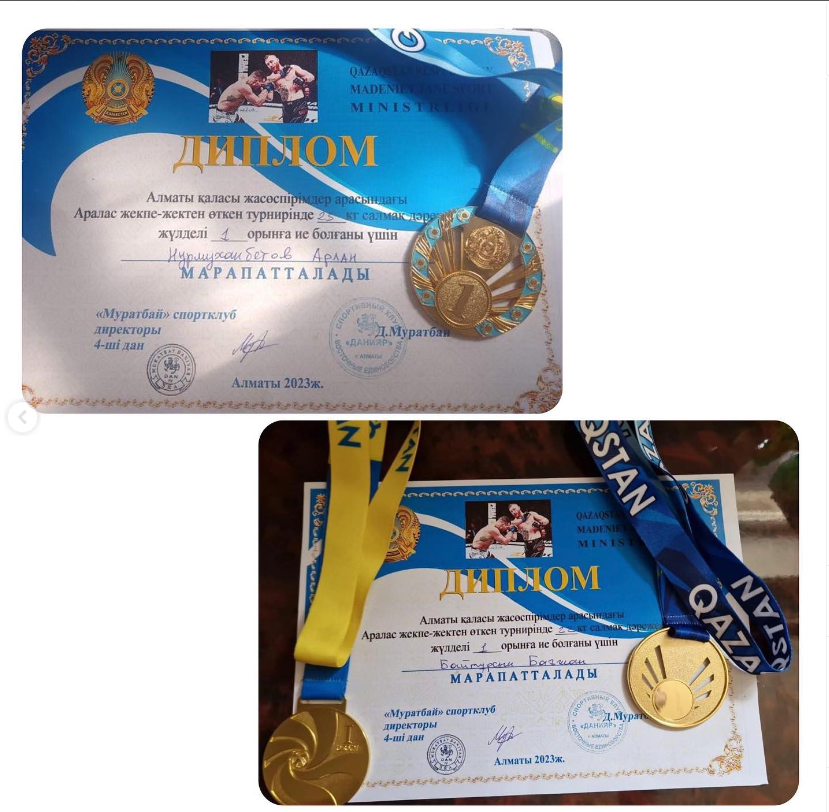 Алматы қаласы жасөспірімдер арасындағы Аралас жекпе-жектен өткен турнирінде 22-23 кг салмақ дәрежелерінде мектебіміздің 1 “В” сынып оқушылары жүлделі 🥇 орынмен марапатталды.