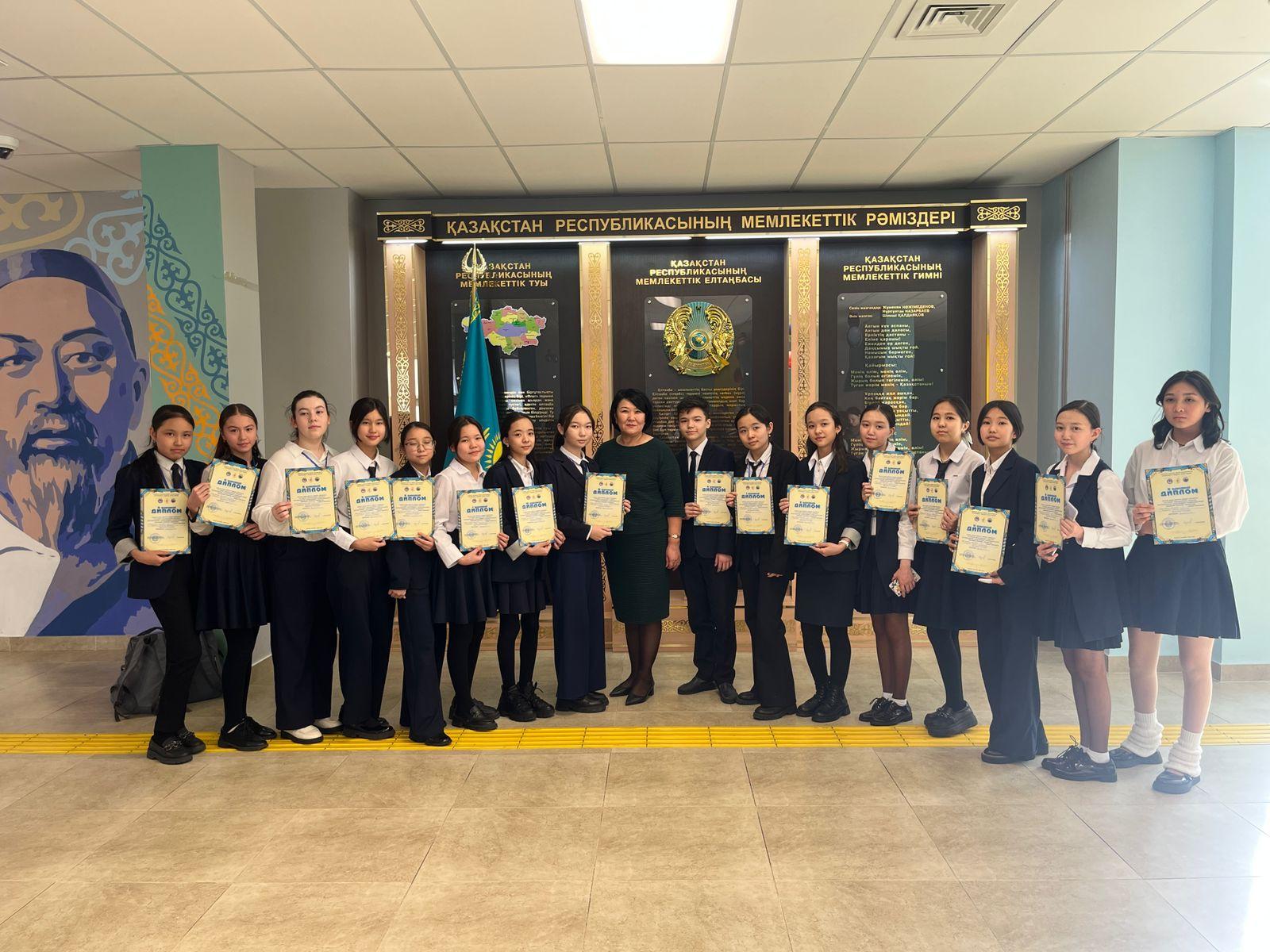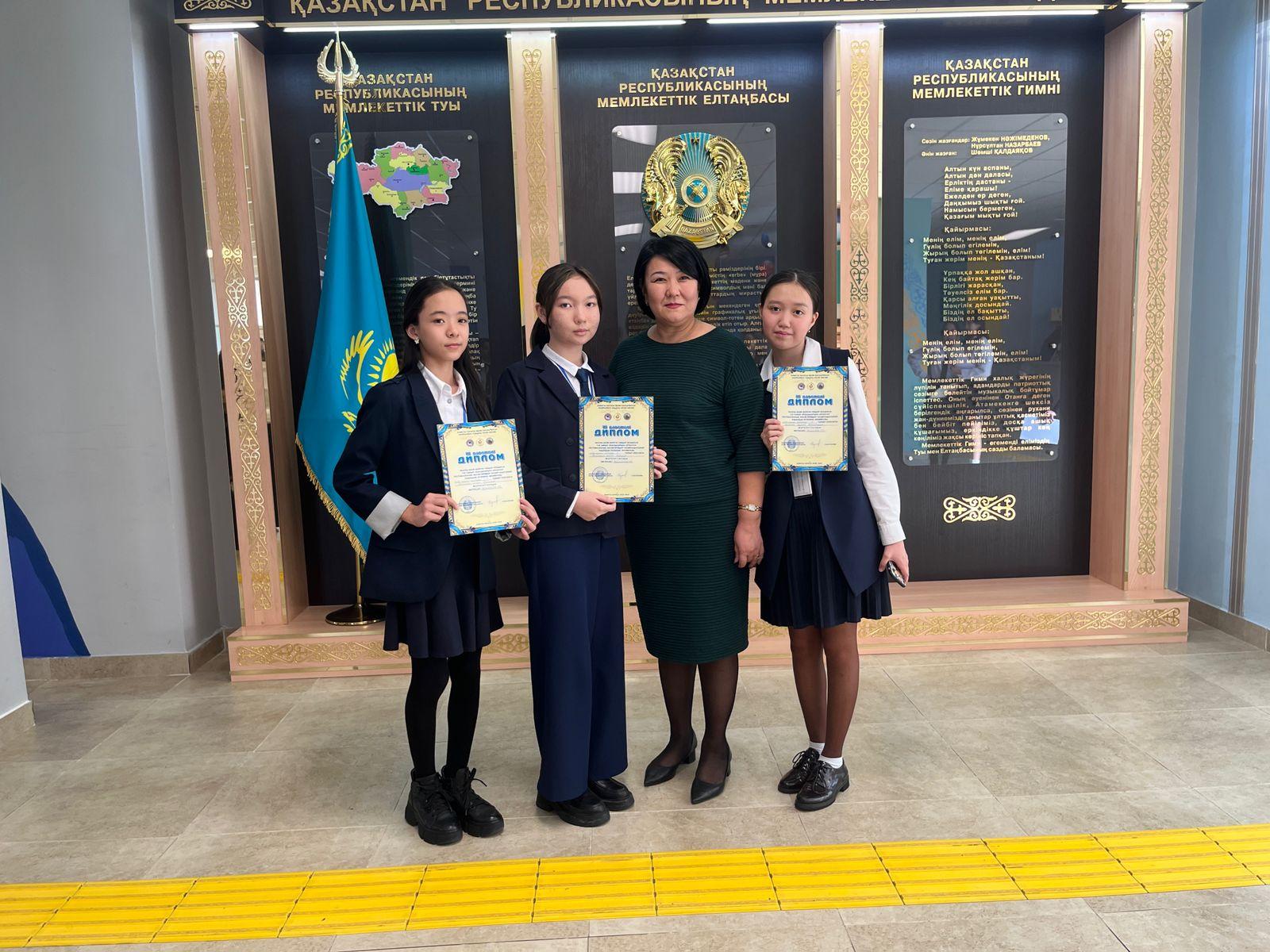 Мектебімізден 7-8 сынып оқушыларынан жалпы саны 17 оқушы қатысып, 17 оқушымыз да жүлделі орындарға ие болып оның ішінде 4 оқушымыз қалалық кезеңге жолдама алды.