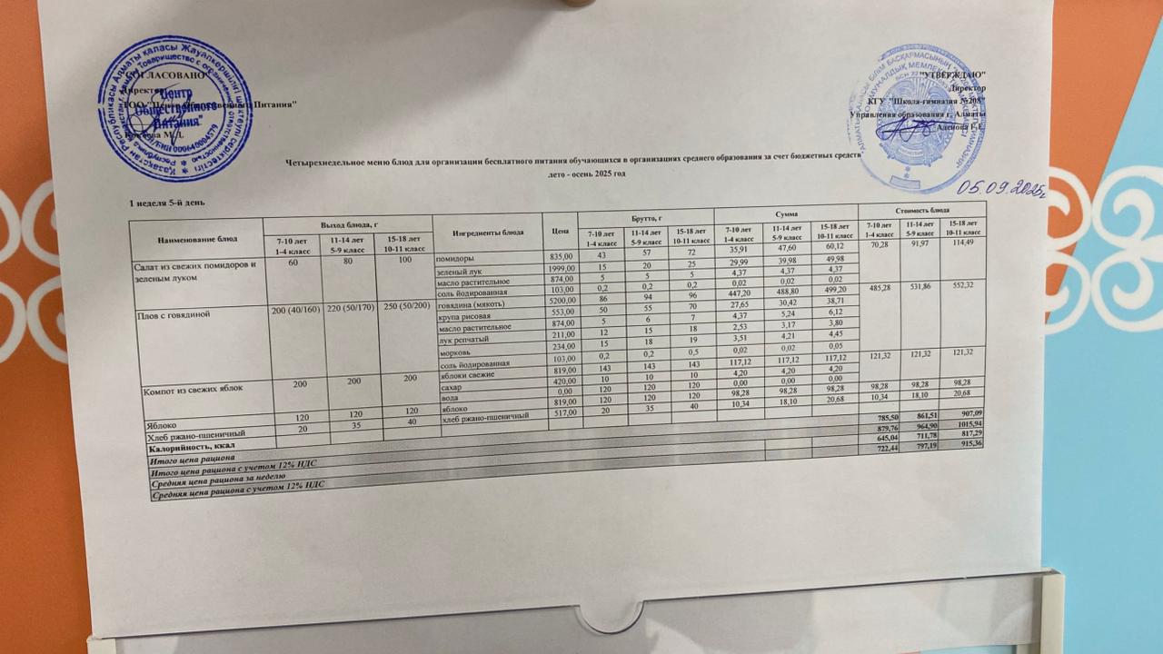 » » 05.09.2025 Асхана мәзірі