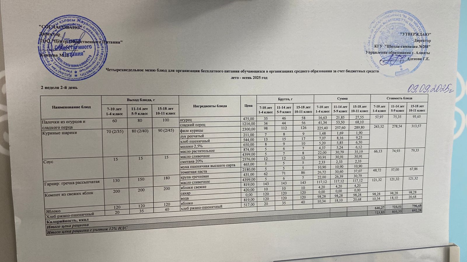 09.09.2025 Асхана мәзірі » №208 мектеп-гимназия