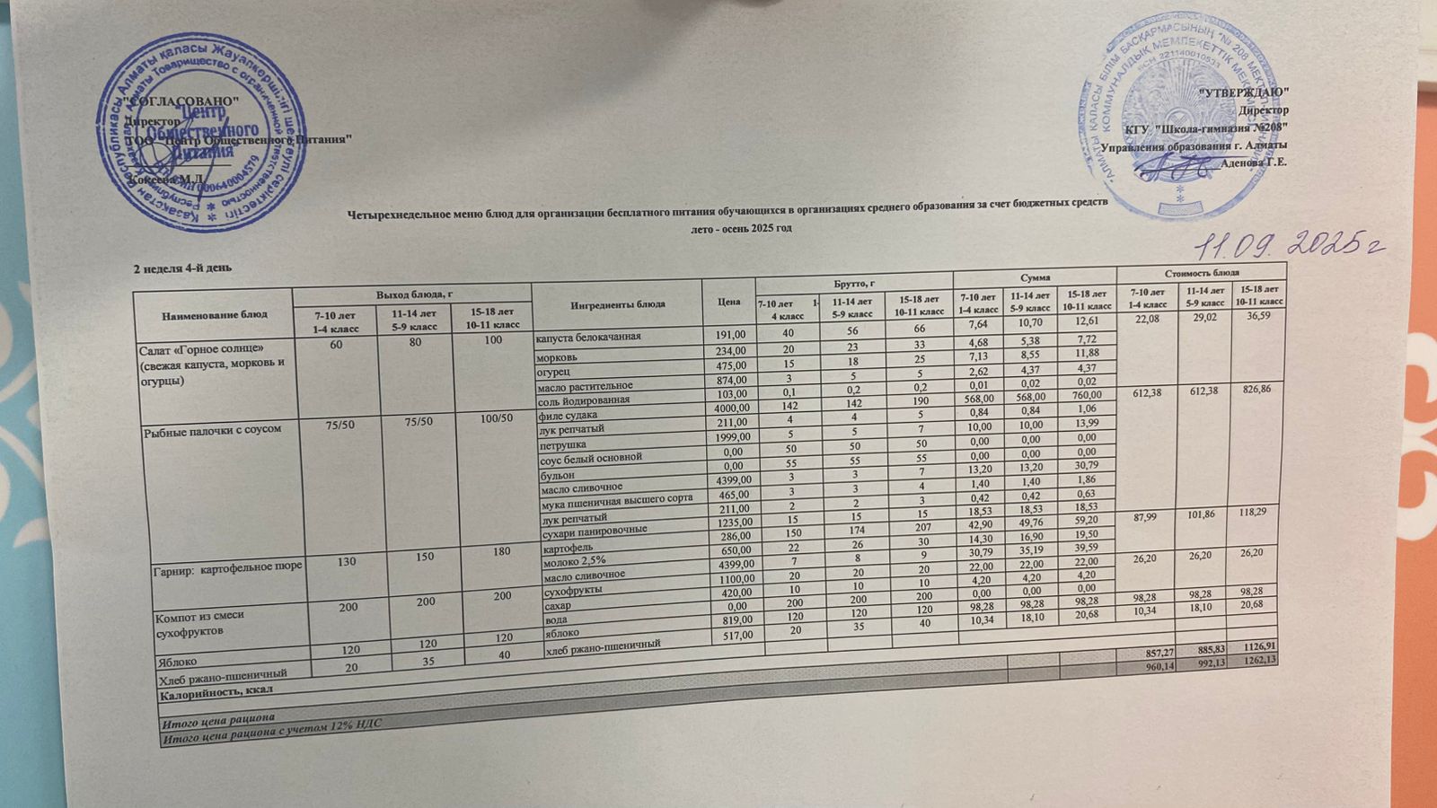 11.09.2025 Асхана мәзірі » №208 мектеп-гимназия