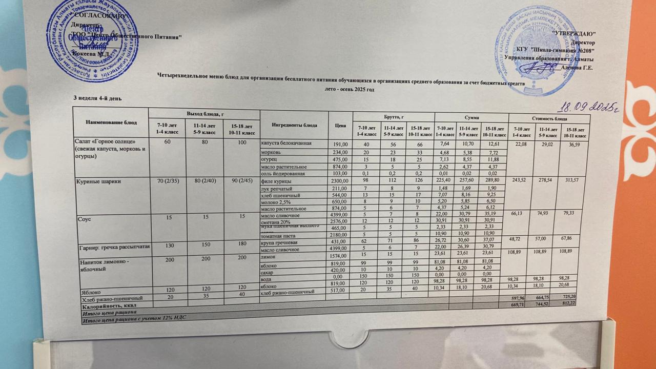 18.09.2025 Асхана мәзірі » №208 мектеп-гимназия