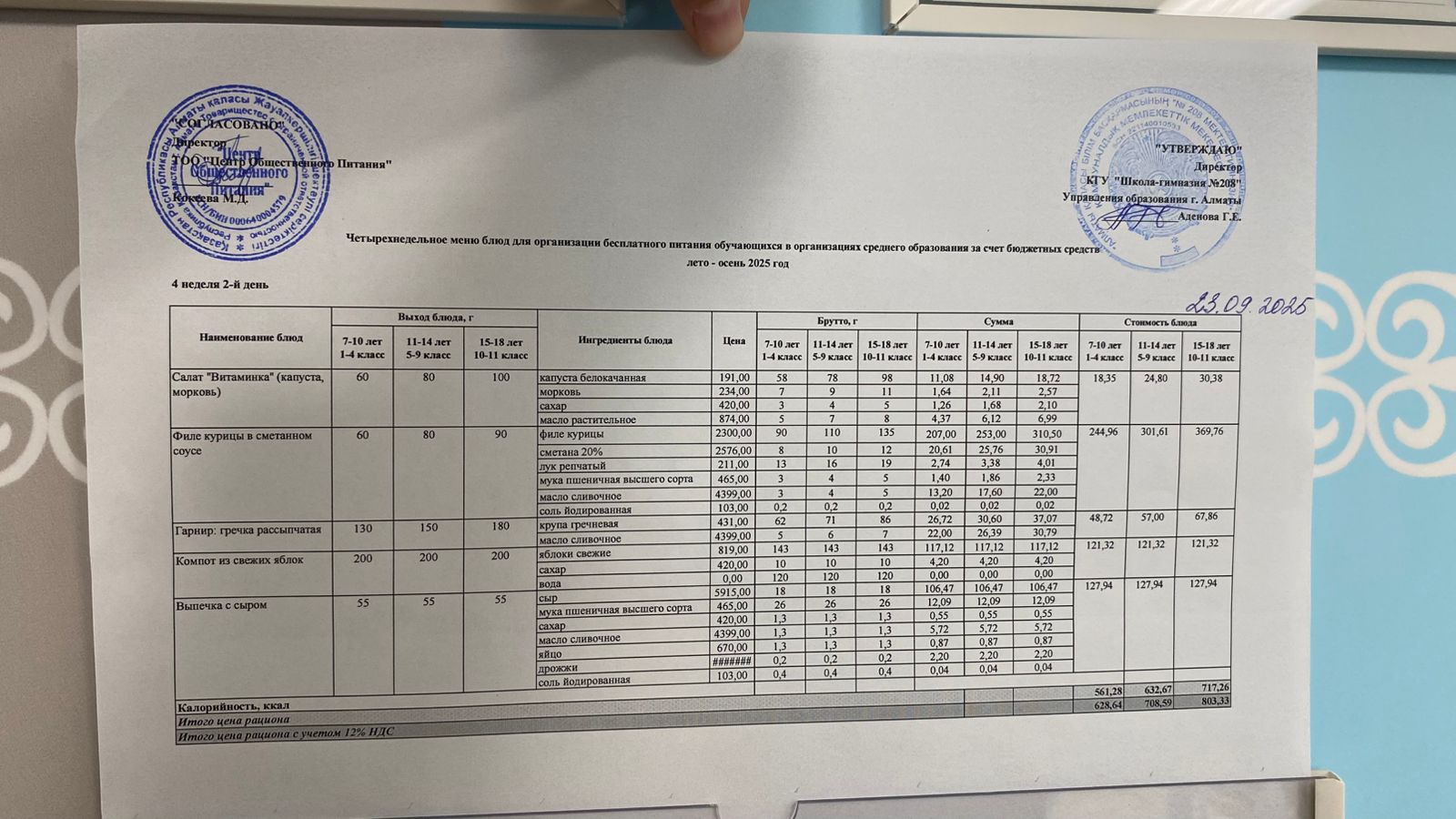23.09.2025 Асхана мәзірі » №208 мектеп-гимназия