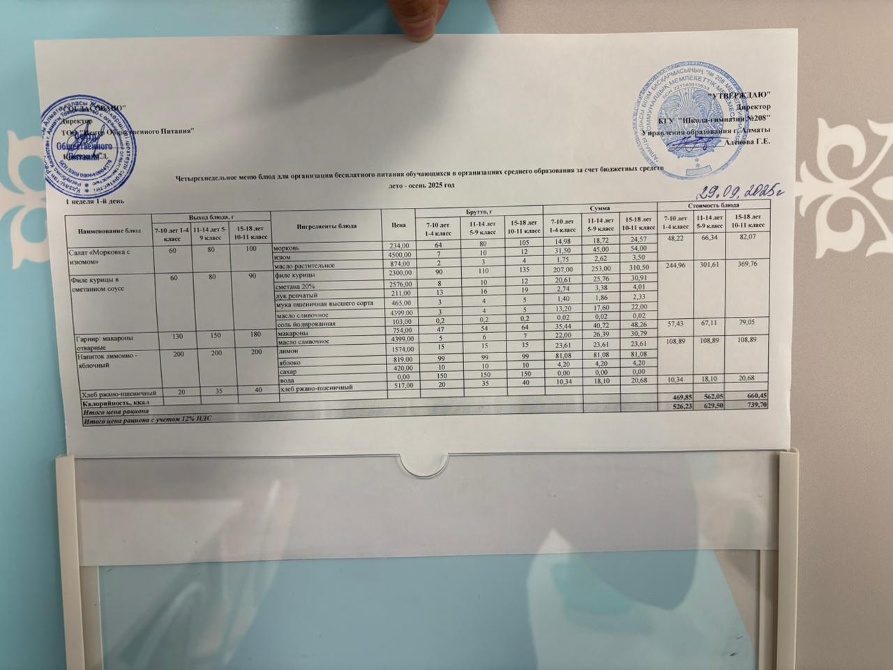 29.09.2025 Асхана мәзірі » №208 мектеп-гимназия