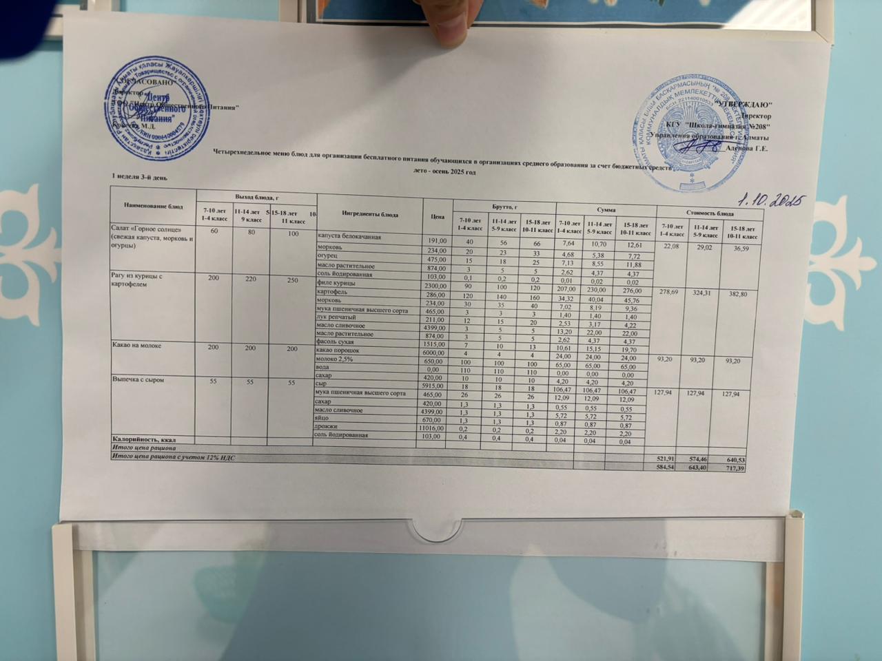 01.10.2025 Асхана мәзірі » №208 мектеп-гимназия