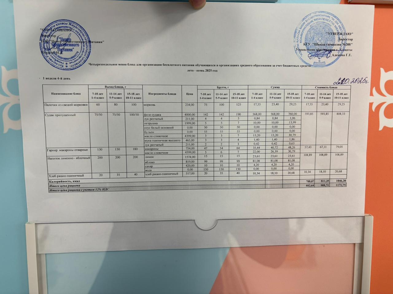 02.10.2025 Асхана мәзірі » №208 мектеп-гимназия
