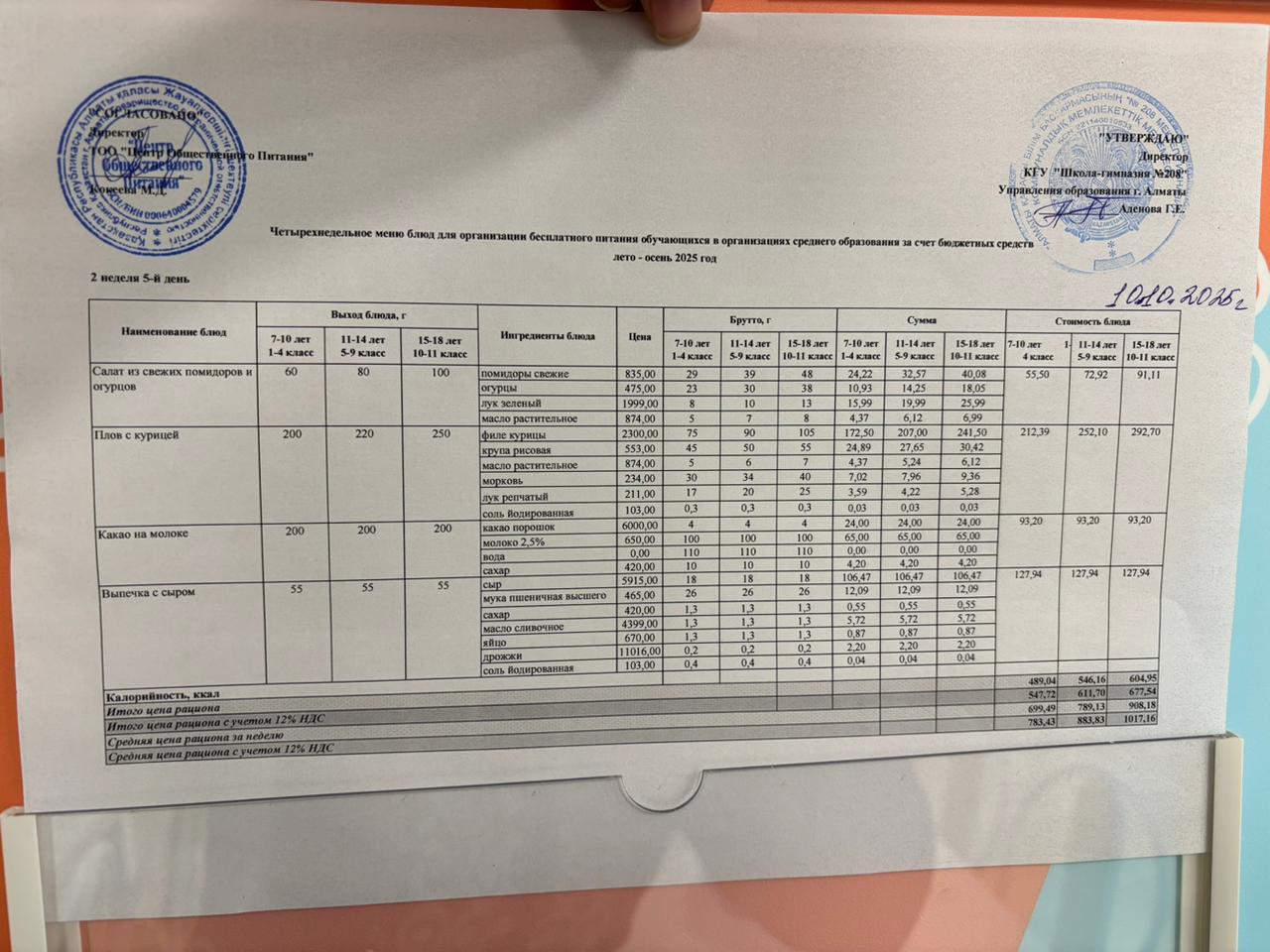 10.10.2025 Асхана мәзірі » №208 мектеп-гимназия