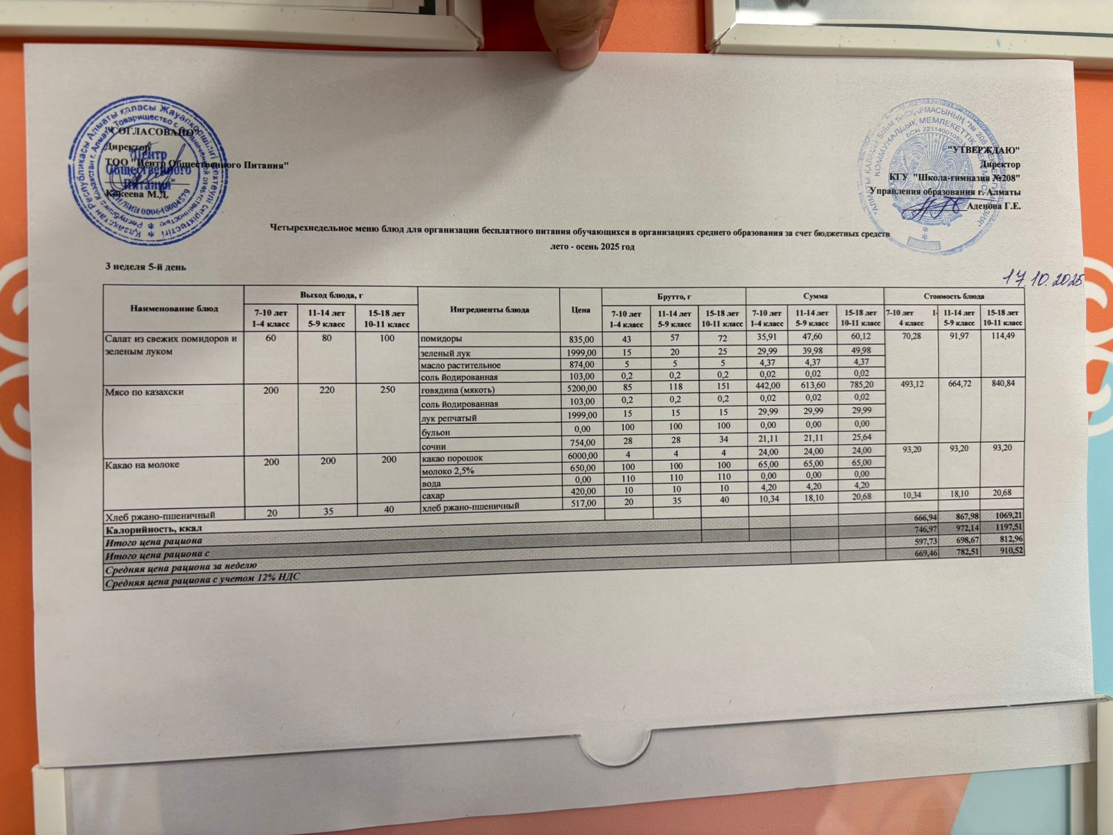 17.10.2025 Асхана мәзірі » №208 мектеп-гимназия