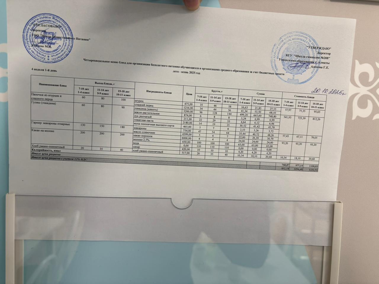 20.10.2025 Асхана мәзірі » №208 мектеп-гимназия