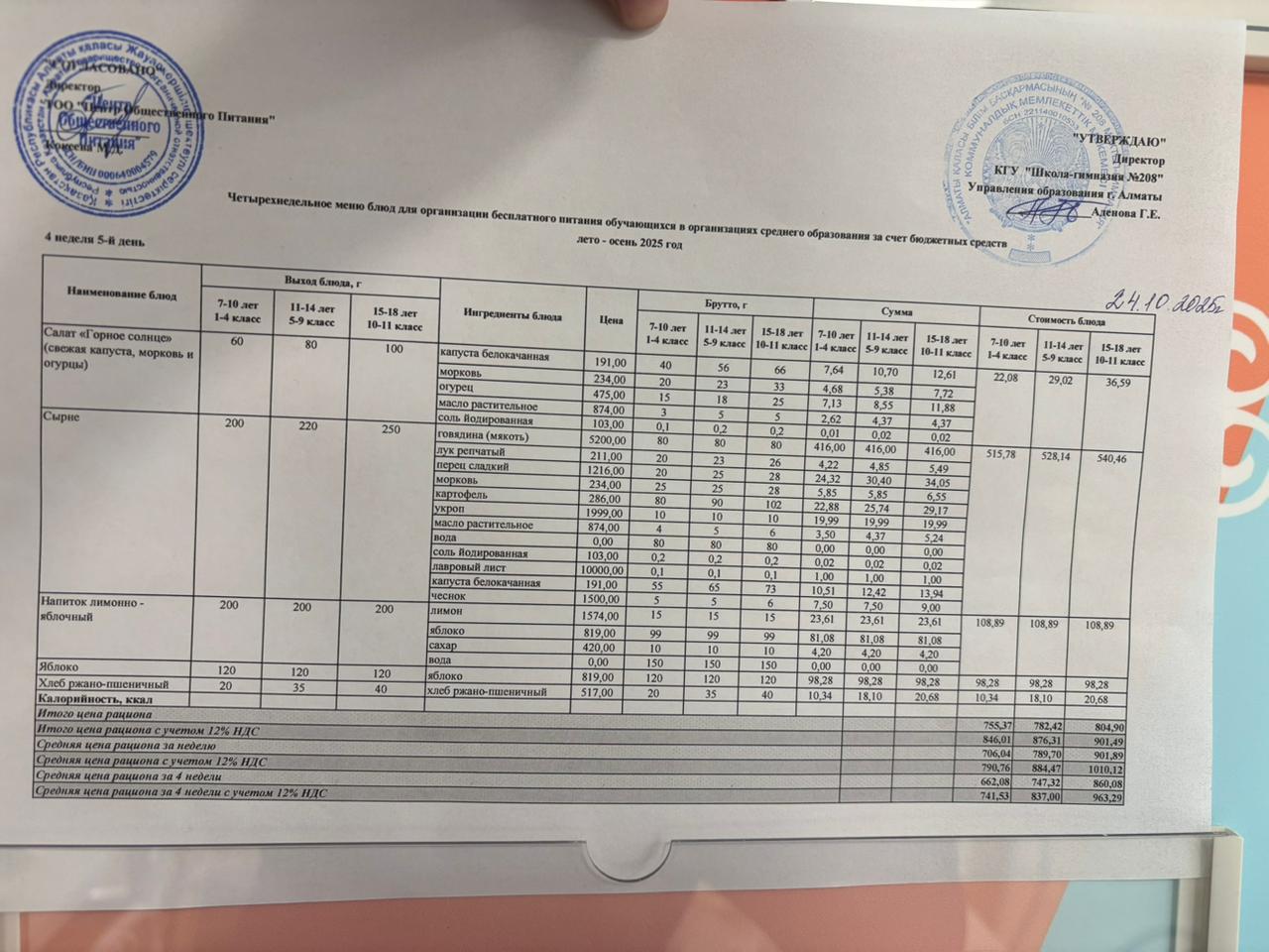 24.10.2025 Асхана мәзірі » №208 мектеп-гимназия