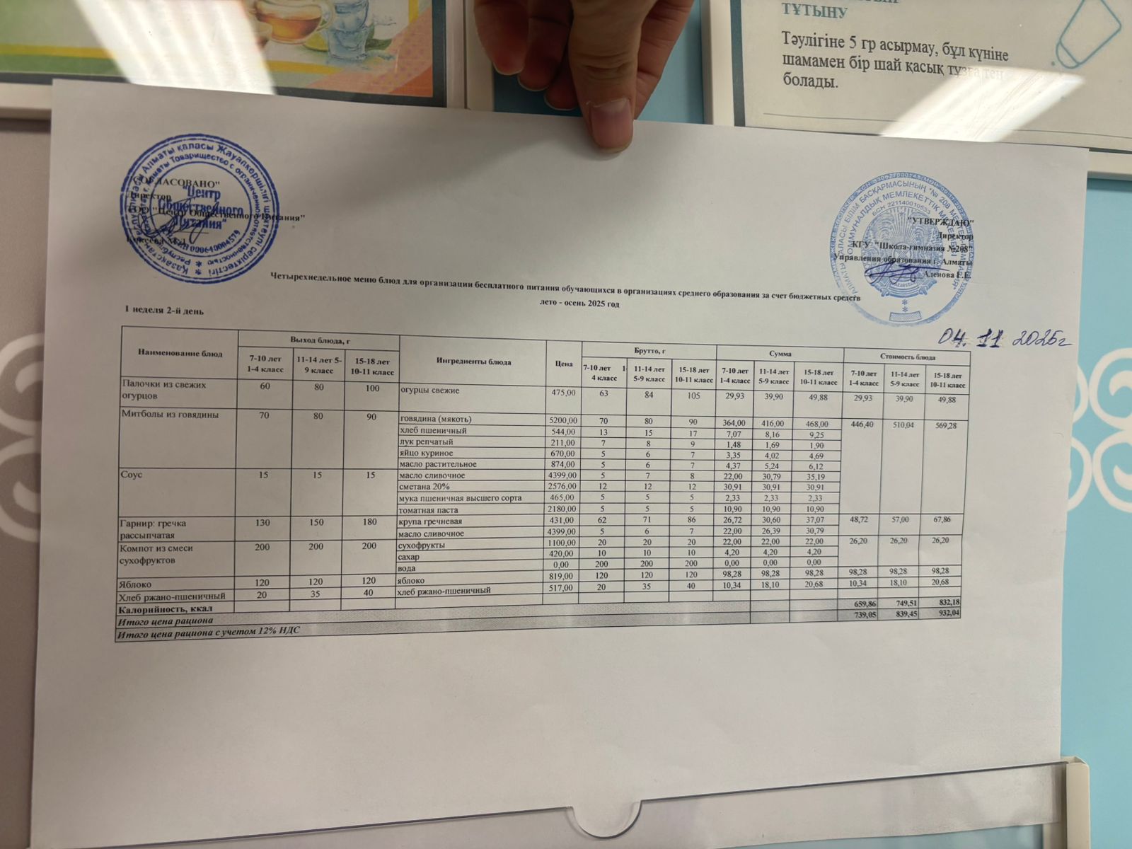 04.11.2025 Асхана мәзірі » №208 мектеп-гимназия
