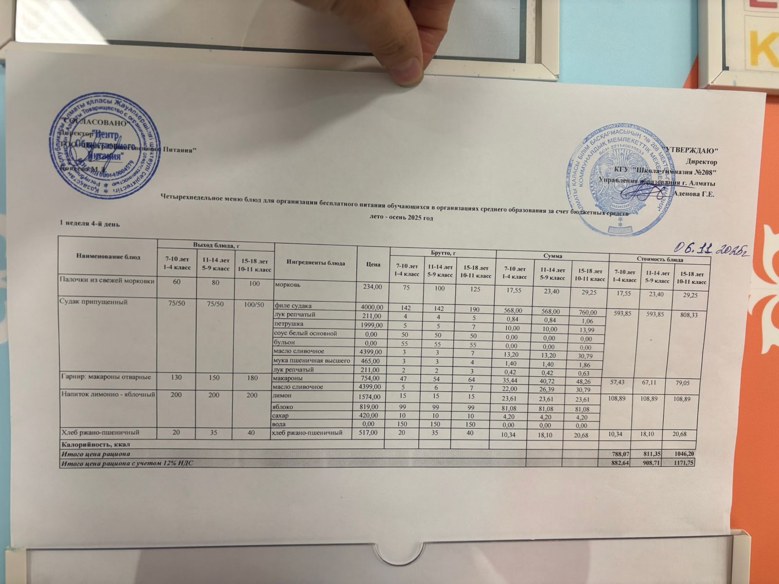 06.11.2025 Асхана мәзірі » №208 мектеп-гимназия