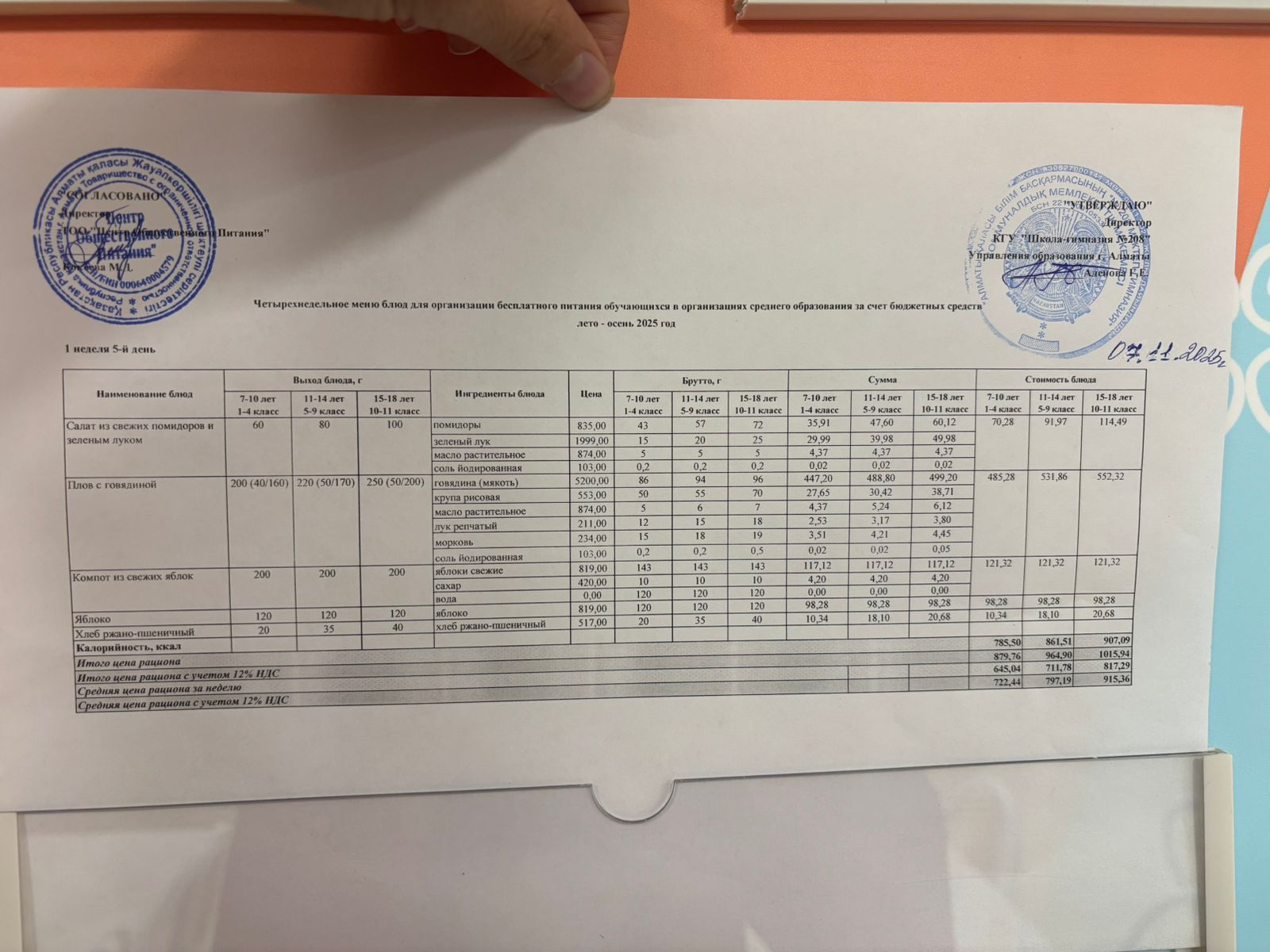 07.11.2025 Асхана мәзірі » №208 мектеп-гимназия