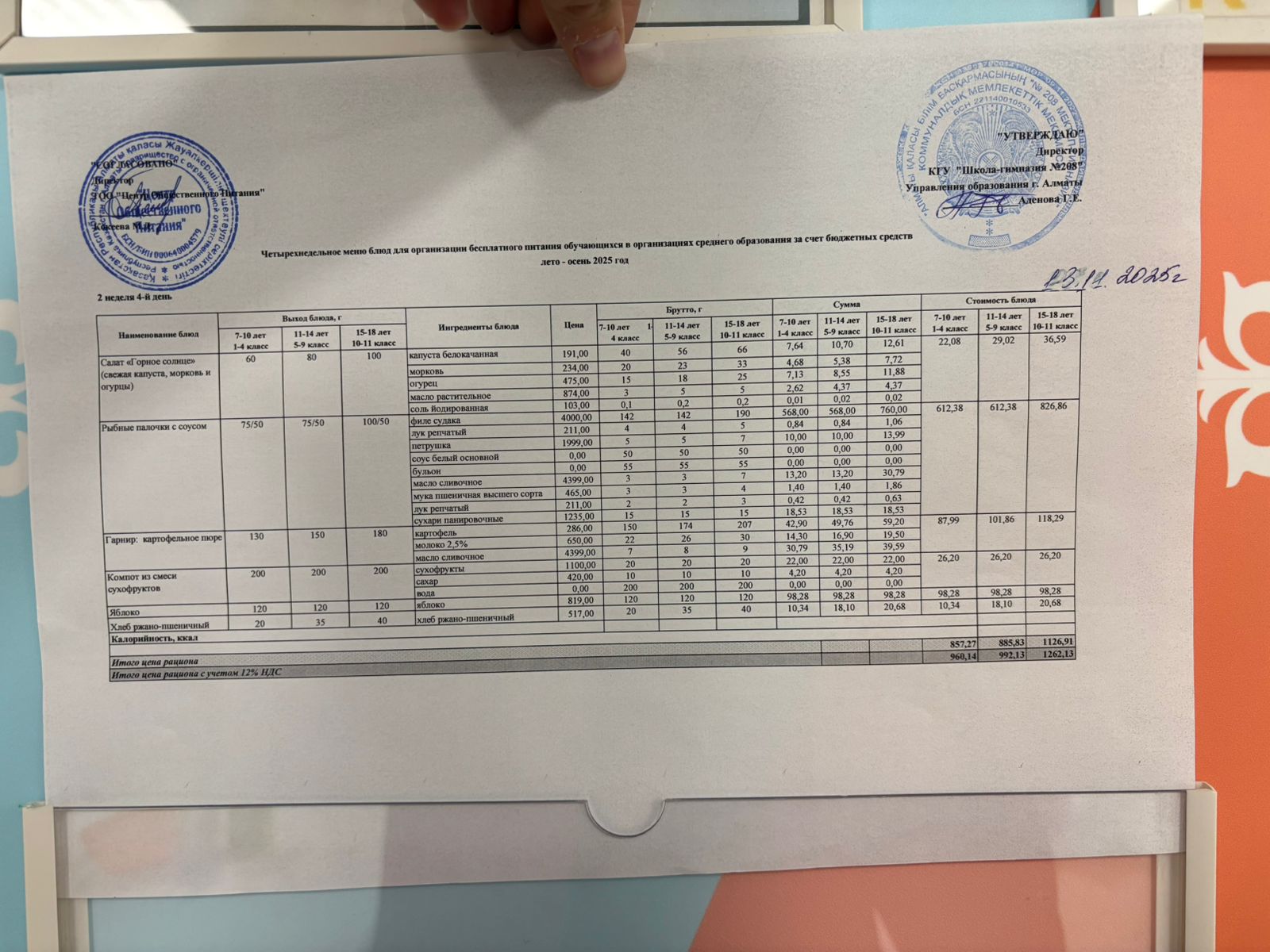 13.11.2025 Асхана мәзірі » №208 мектеп-гимназия