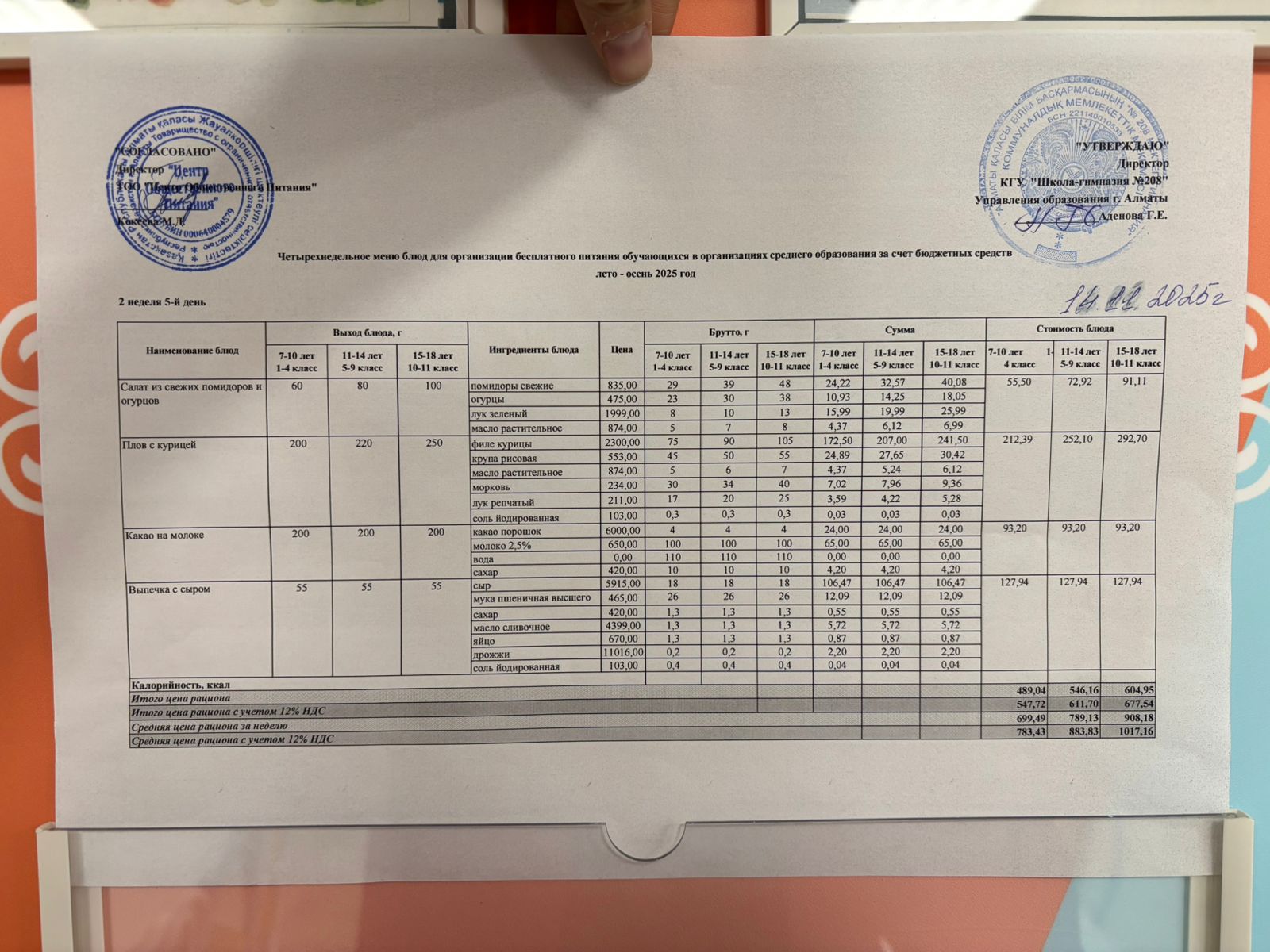 14.11.2025 Асхана мәзірі » №208 мектеп-гимназия