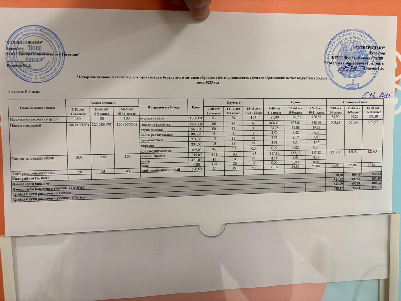 05.12.2025 Асхана мәзірі » №208 мектеп-гимназия