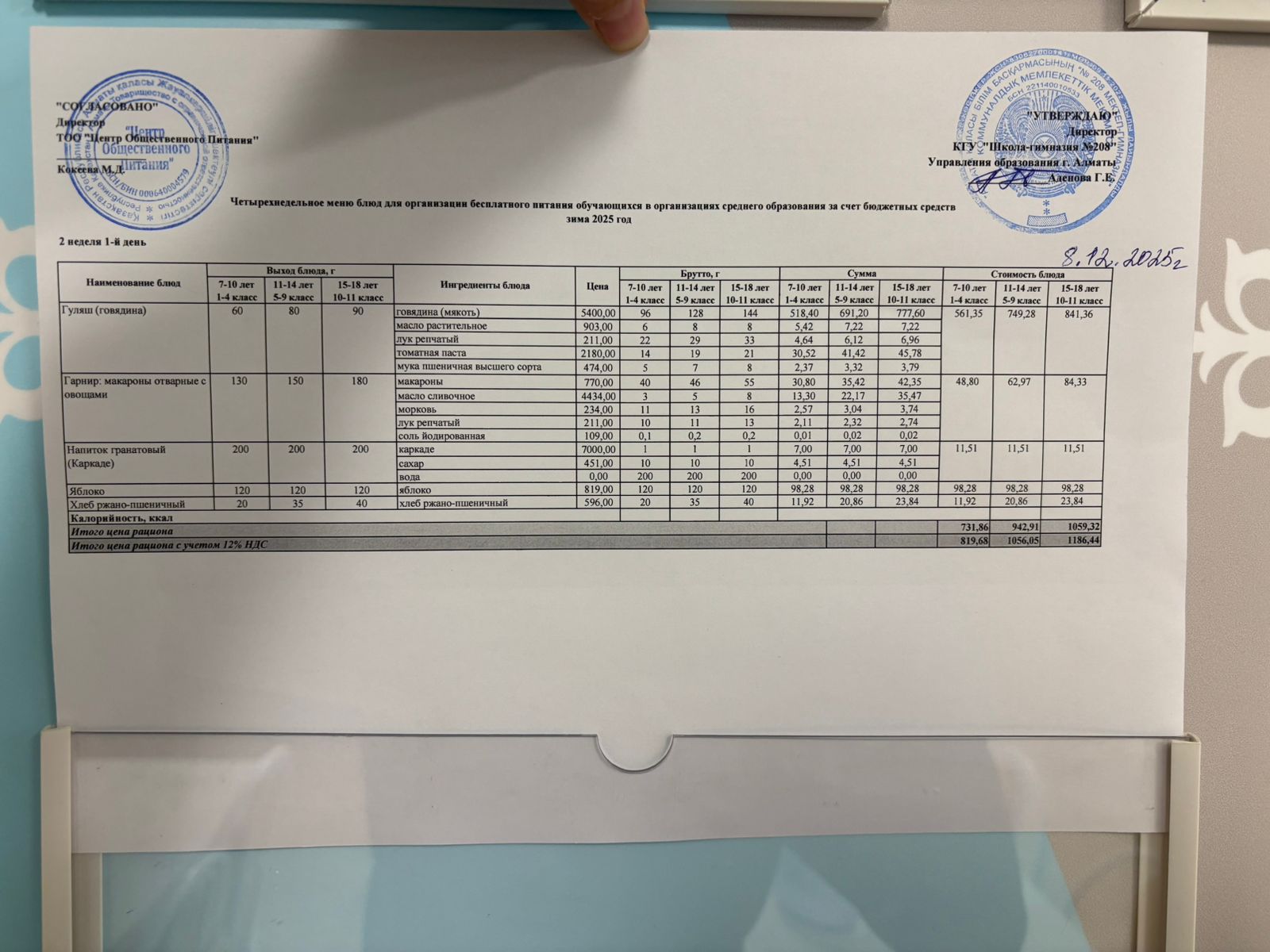 08.12.2025 Асхана мәзірі » №208 мектеп-гимназия