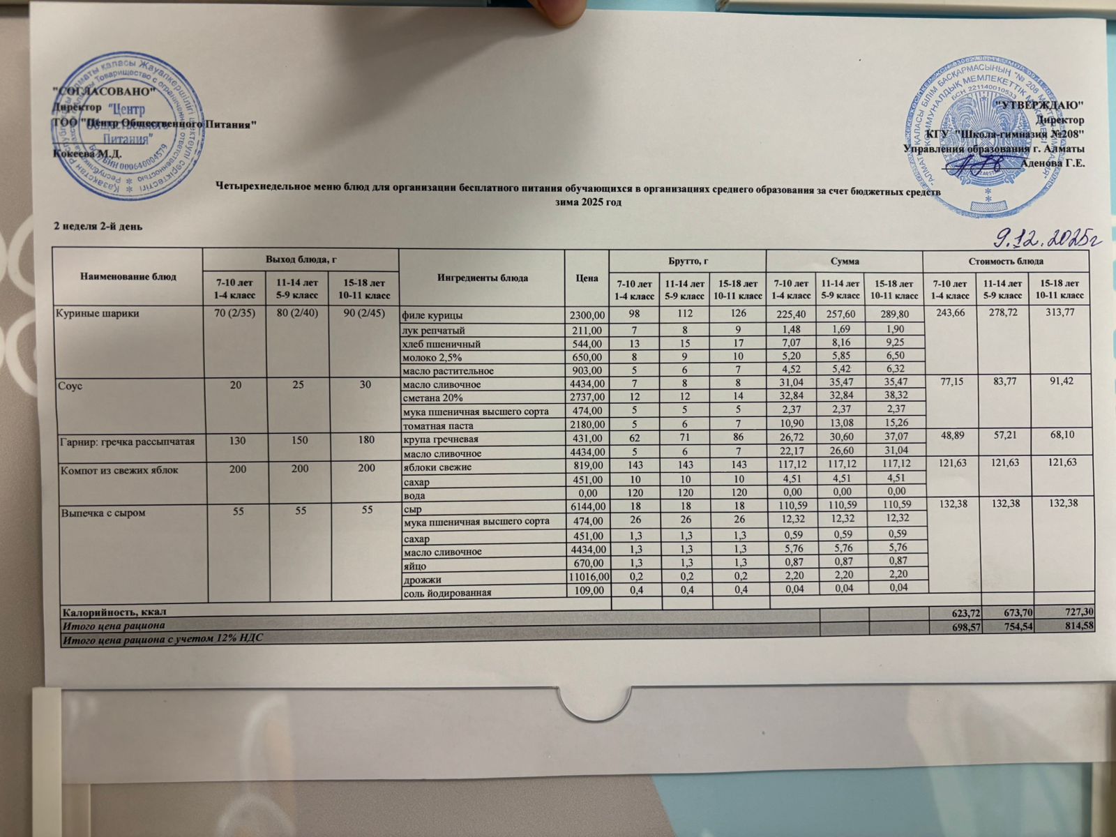 09.12.2025 Асхана мәзірі » №208 мектеп-гимназия
