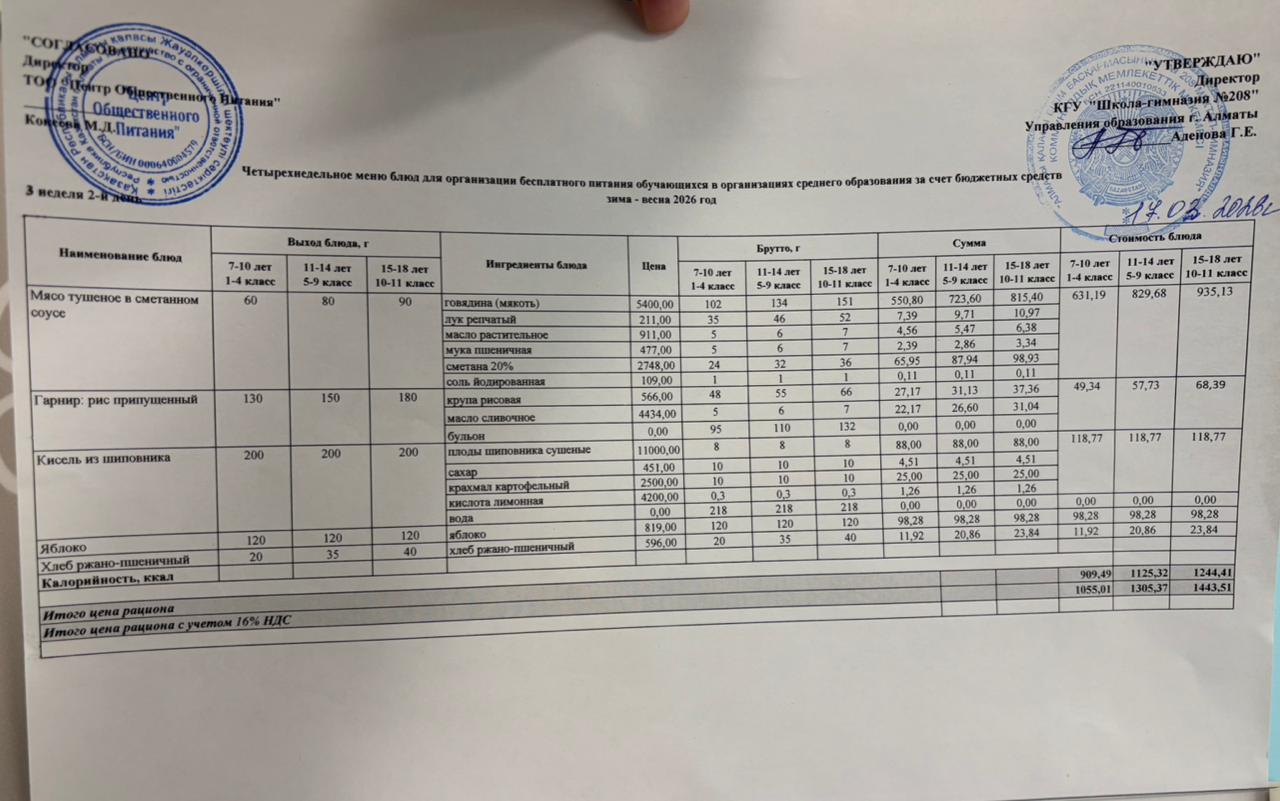 17.03.2026 Асхана мәзірі » №208 мектеп-гимназия