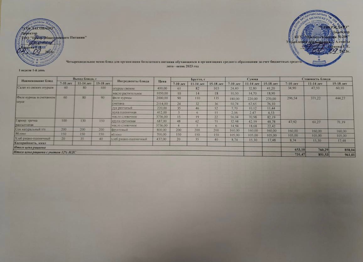 04.09.2023ж Асхана мәзірі » №208 мектеп-гимназия