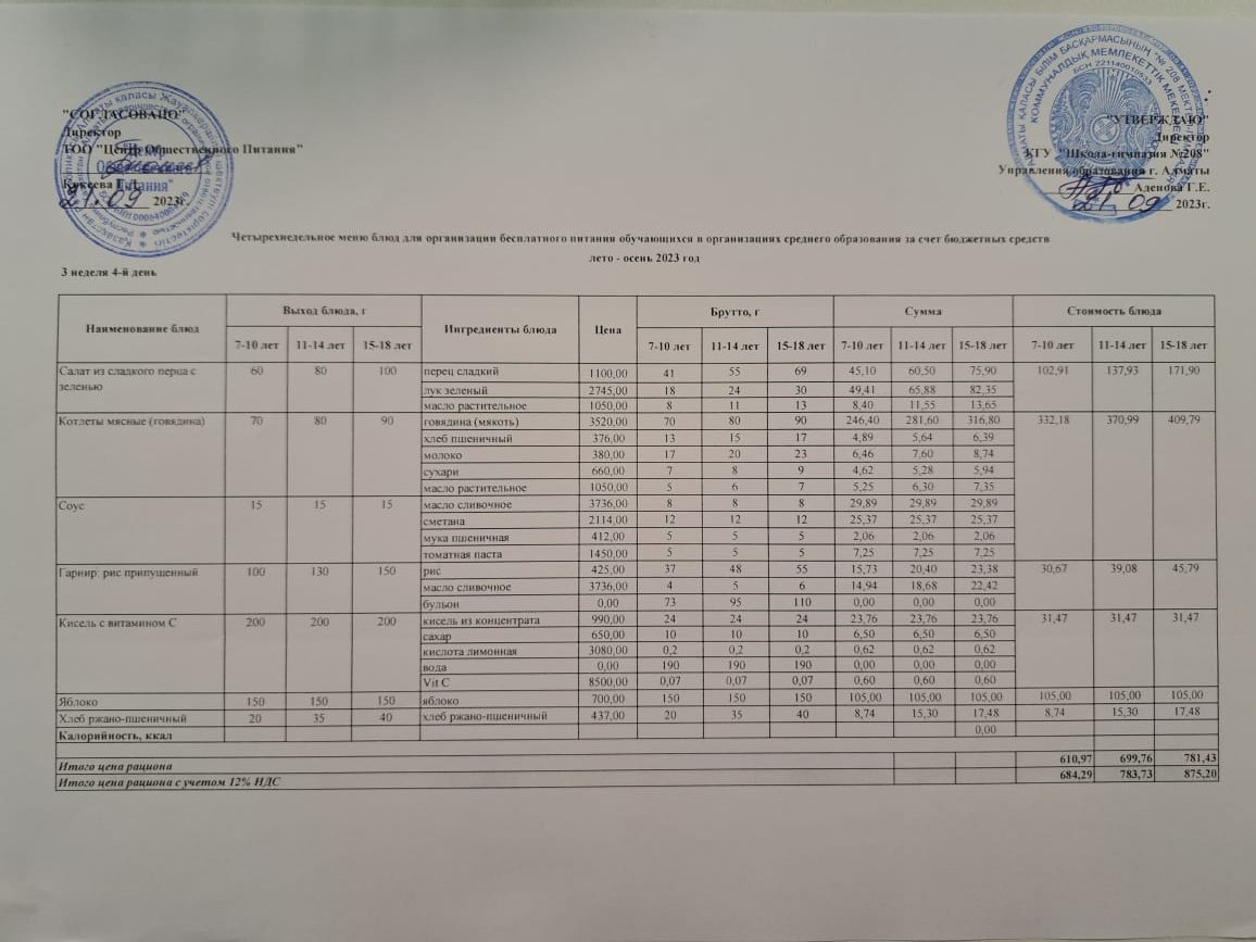 21.09.2023ж Асхана мәзірі » №208 мектеп-гимназия