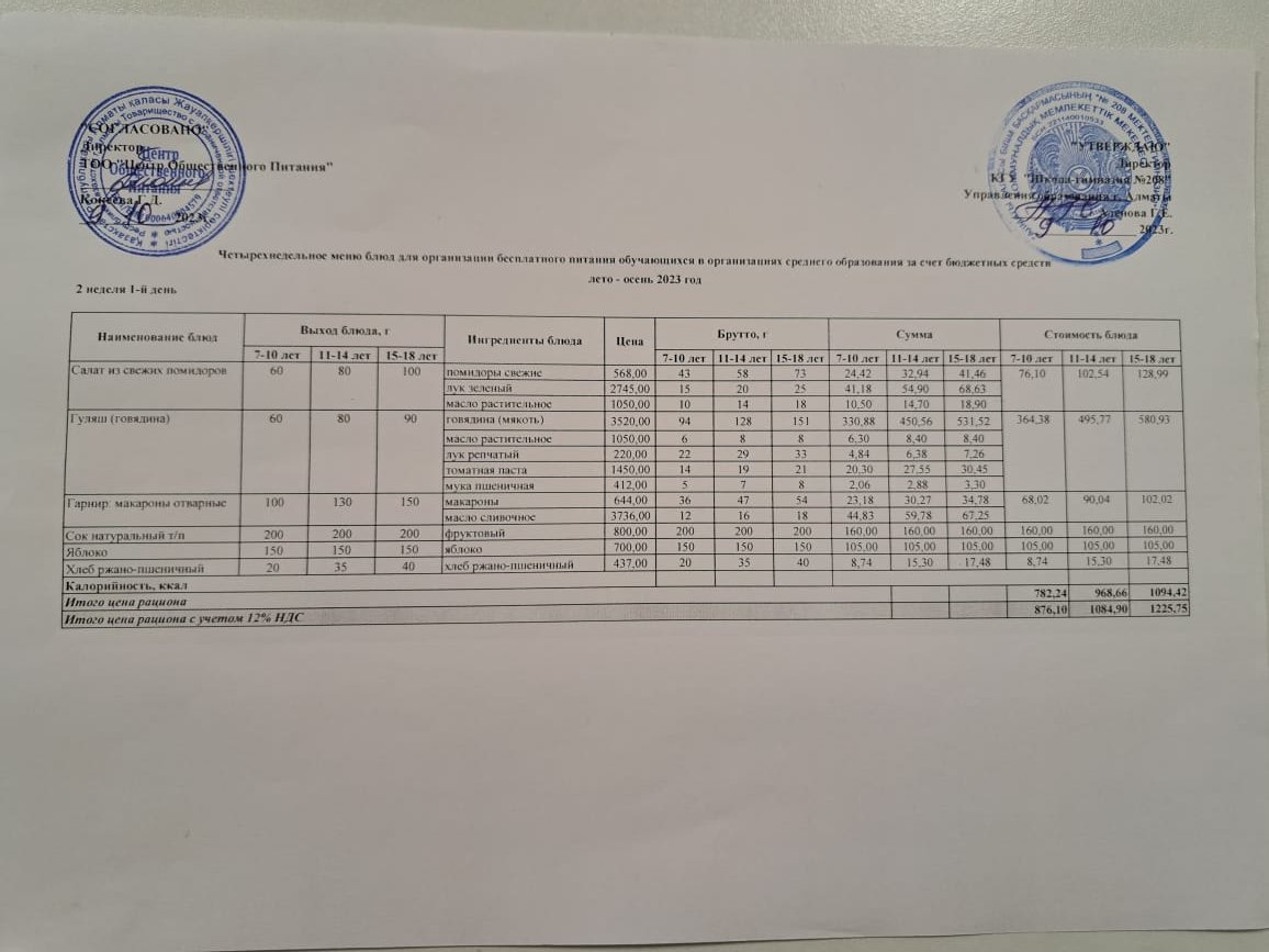 09.10.2023ж Асхана мәзірі » №208 мектеп-гимназия
