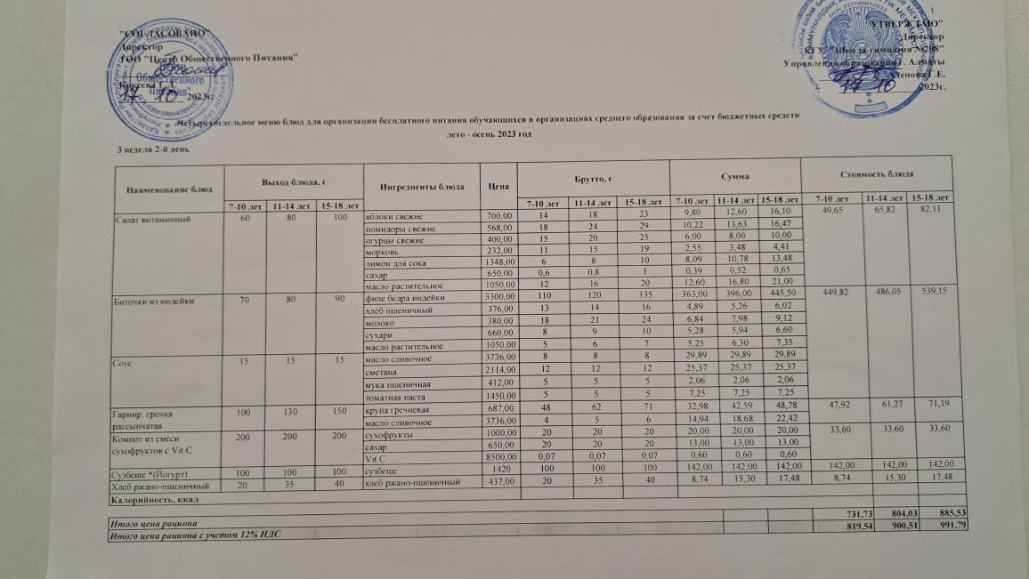 17.10.2023ж Асхана мәзірі » №208 мектеп-гимназия