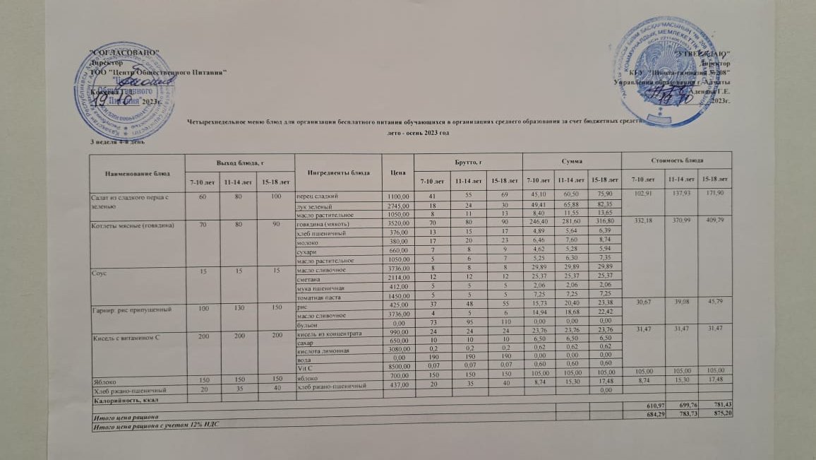 19.10.2023ж Асхана мәзірі » №208 мектеп-гимназия