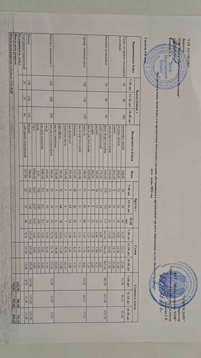 Асхана мәзірі 09.11.2023 » №208 мектеп-гимназия