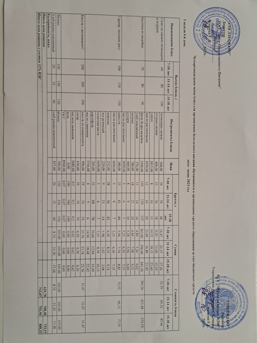 Асхана мәзірі 05.10.2023 » №208 мектеп-гимназия