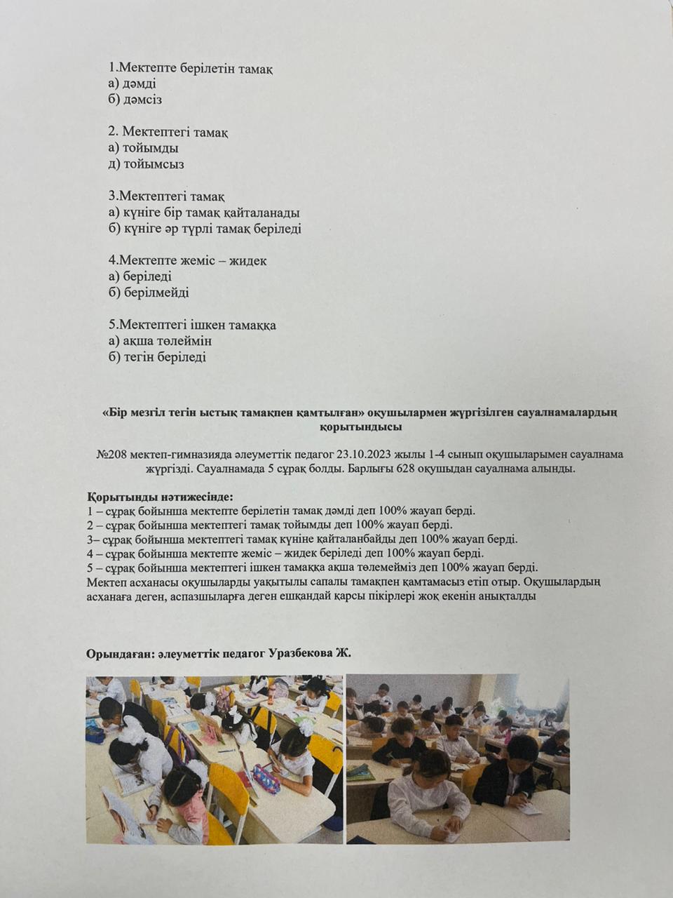 23 қазан 2023 0 1 2 3 4 5 «Бір мезгіл тегін ыстық тамақпен қамтылған» оқушылармен жүргізілген сауалнаманың қорытындысы