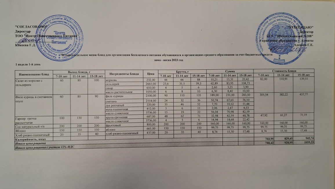 Асхана мәзірі 04.12.2023 » №208 мектеп-гимназия